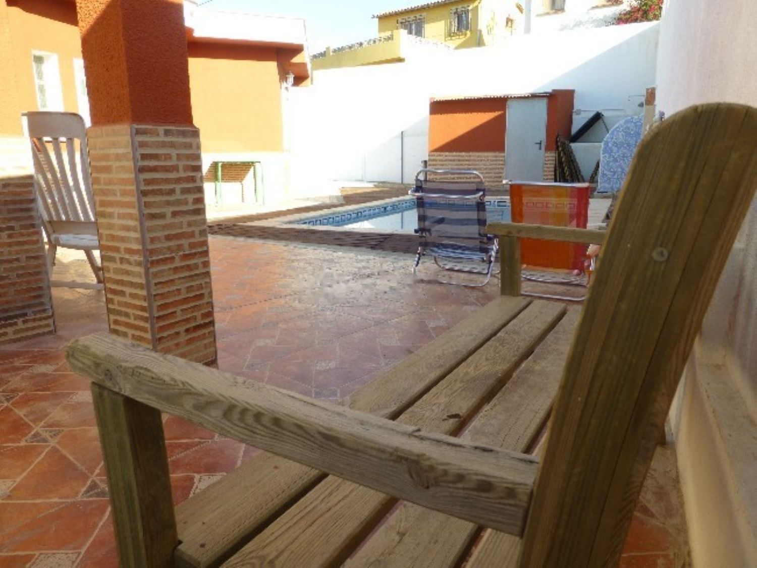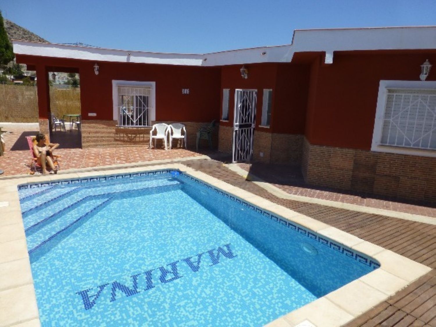 Casa independiente, intima, con una gran piscina barbacoa de obra, tres camas, cocina totalmente amueblada, salón terraza cubierta y descubierta. Especialmente indicada para grupos, a 5 minutos de la playa, centro comercial y centro de municipio.