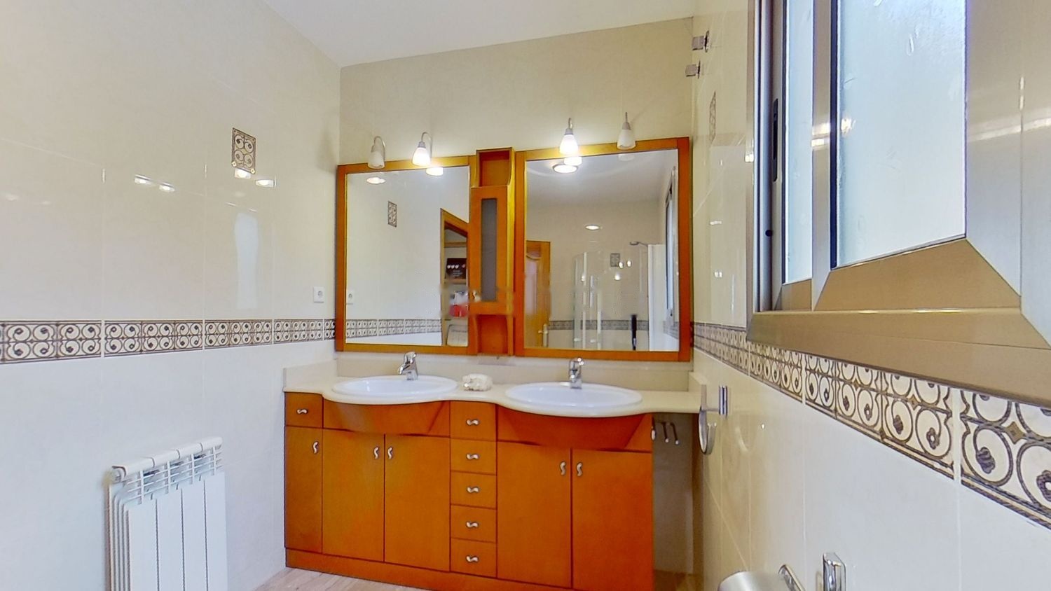 Desde el pasillo accedemos a un dormitorio doble, de grandes dimensiones y a un baño completo y salida a la parte trasera de la casa.