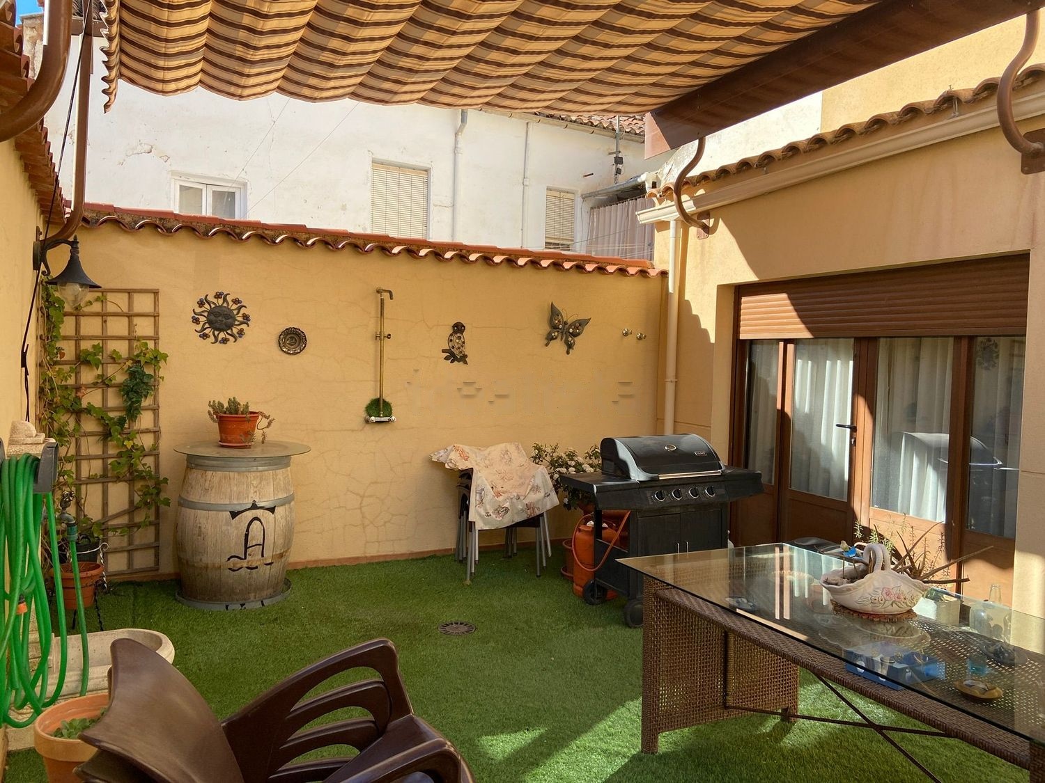 Patio trasero con barbacoa y ducha