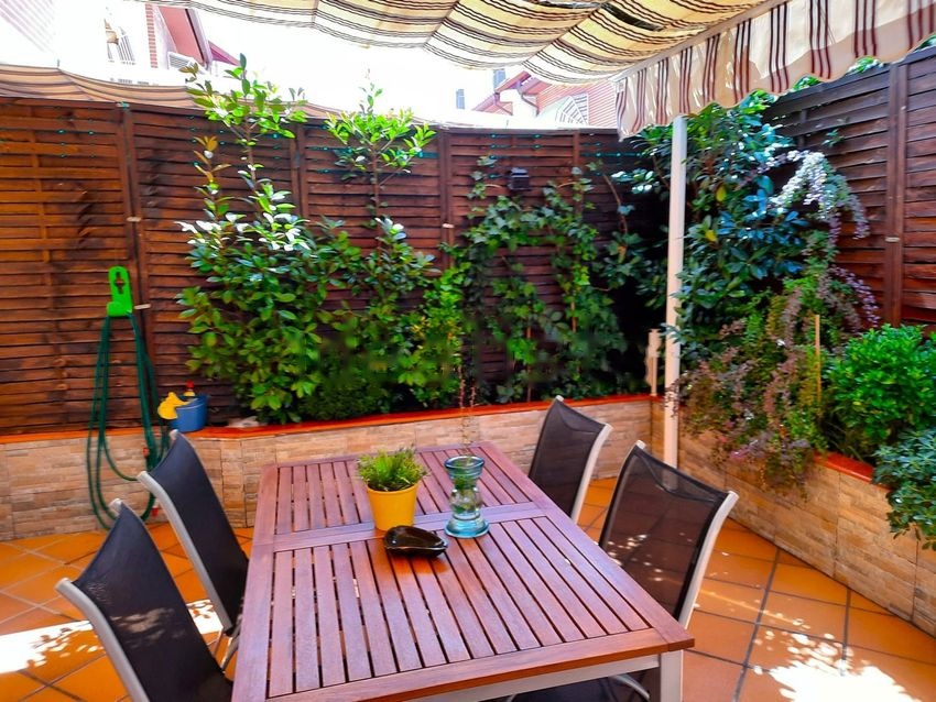 Patio exterior trasero con pérgola doble con instalación de riego automático, patio exterior delantero con pérgola adosada en madera, ideal como comedor al aire libre, también con riego automático. Aire acondicionado/bomba de calor en salón y en habitación principal, puertas del garaje automatizadas. Video portero con cámara. Suelo de mármol en salón, hall, escalera y hall entreplanta, tarima flotante y parquet en habitaciones, en la buhardilla el suelo es gres porcelánico en toda la estancia incluido el baño con ducha.