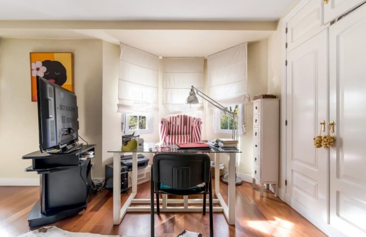 En planta alta: habitación principal de gran tamaño (antes 2 dormitorios) en suite y con vestidor, y un segundo dormitorio doble también en suite.