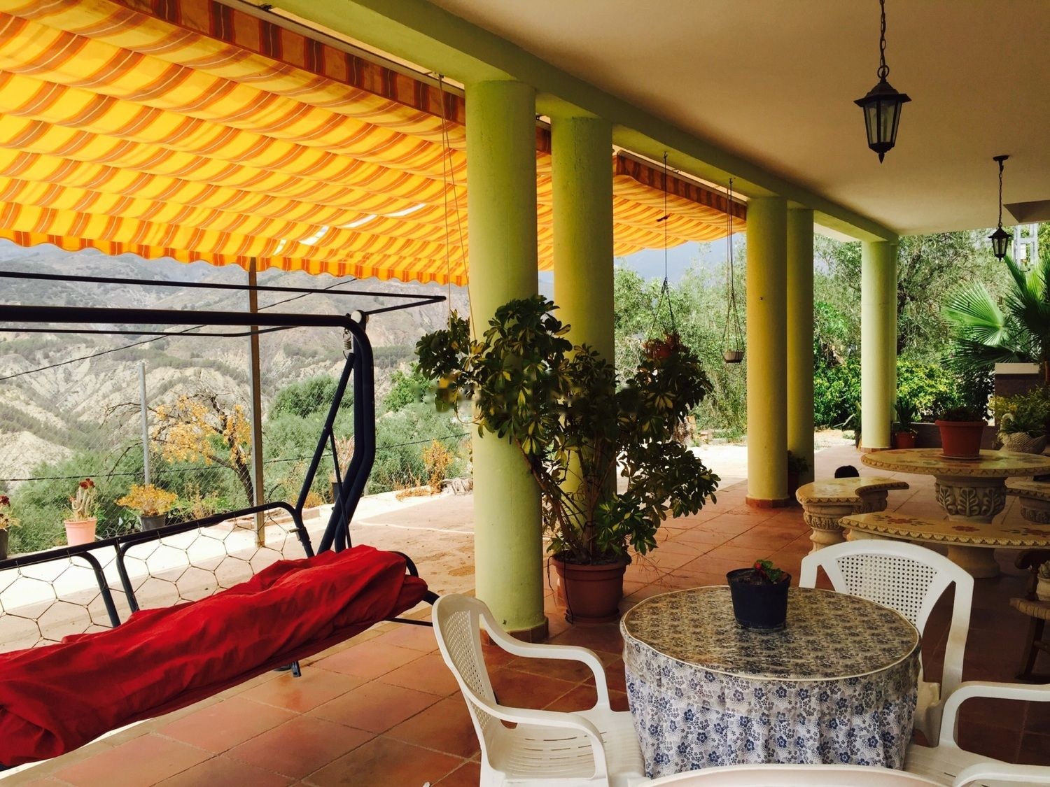chalet-cortijo en una zona privilegiada de la sierra de alcolea, con vistas a las cumbres de sierra nevada y todas las alpujarras, totalmente vallado el perímetro de la finca, lleno de frutales y olivos, ideal para desconectar. Tiene un amplio porche con vistas a la Alpujarra Y Sierra Nevada.