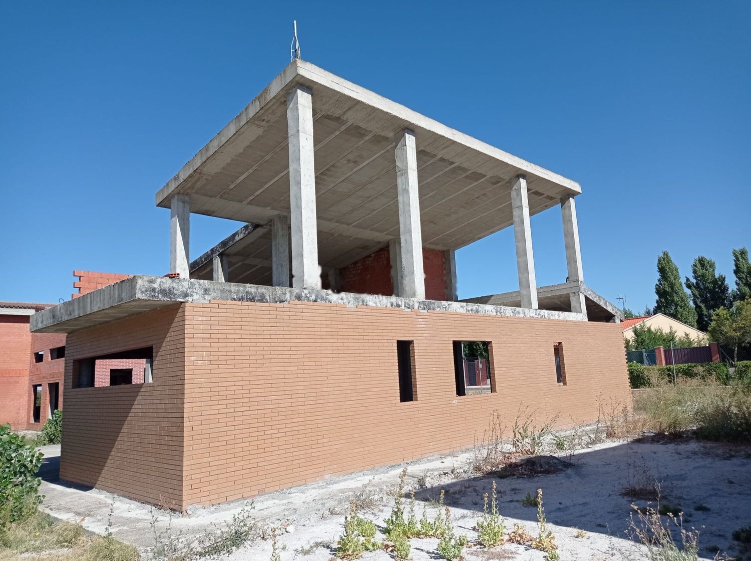 Chalet independiente en fase de construcción en calle Río Tajo en la urbanización El Soto de Aldeamayor de San Martín. Se trata de un chalet de 138 metros construidos, distribuido en 2 plantas. La parcela tiene una superficie de 1012 metros cuadrados. Hay un vallado alrededor de los 3 chalets independientes que están en la zona. Dispone de agua, luz y gas hasta la entrada.