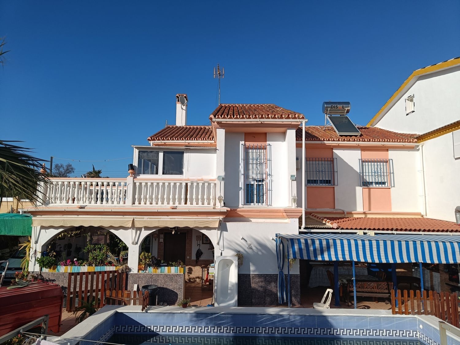 Se vende casa de particular a particular. Magnifico chalet el cual esta formado por dos viviendas:-Una principal con 3 dormitorios, 2 baños, salon con cocina integrada, sala de estar y terraza.-Vivienda de 1 dormitorio con salon con cocina integrada, baño y un dormitorio con una amplia terraza.Ambas viviendas tienen acceso independiente.La vivienda dispone de zona de barbacoa exterior con varias terrazas, piscina y dos garages para vehículos o almacenes. Dispone de un terreno 1450 metros cuadrados con arboles frutales.