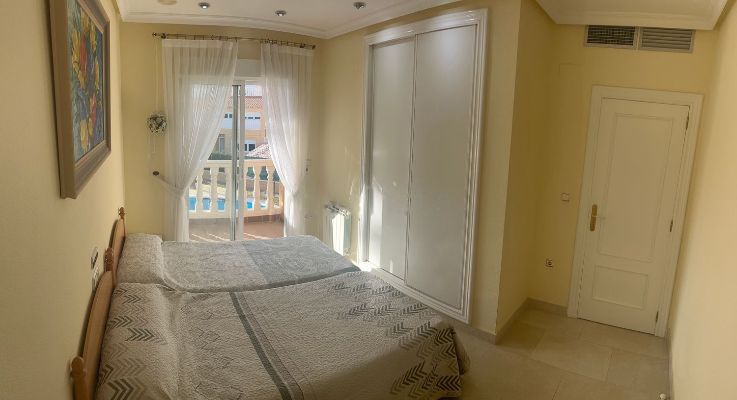 La primera planta dispone de un dormitorio de matrimonio con un fantástico baño con jacuzzi y ducha. Cuenta además con balcón privado con unas vistas inmejorables de El Cabo, playa San Juan y hasta Benidorm. En esta planta se dispone además de 2 habitaciones dobles con una terraza y un baño completo.