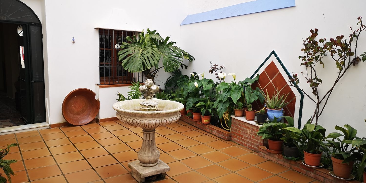 Una hermosa, amplia y muy luminosa casa distribuida en dos plantas, y un patio en el interior con acceso desde toda la primera planta, y que da a una terracita en la parte superior. E la segunda planta dispone de cuatro habitaciones dobles, dos de ellas en suite, a la cual se accede por una escalera muy señorial desde el interior del salón principal en la primera planta, en la cual se puede disfrutar de una gran chimenea con vistas al patio interior y jardín. En la primera planta también se dispone de una habitación doble. Una cocina completamente reformada sin perder su estilo rustico es muy amplia y luminosa y muy bien equipada con todos los enseres incluido armarios y despensa, un cuarto de baño completo, en la parte exterior hay una zona adecuada para lavandería con una pila antigua.