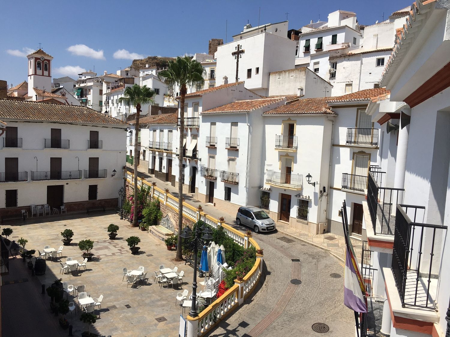Orientación sur, con vistas a la Iglesia, Ayuntamiento y plaza.