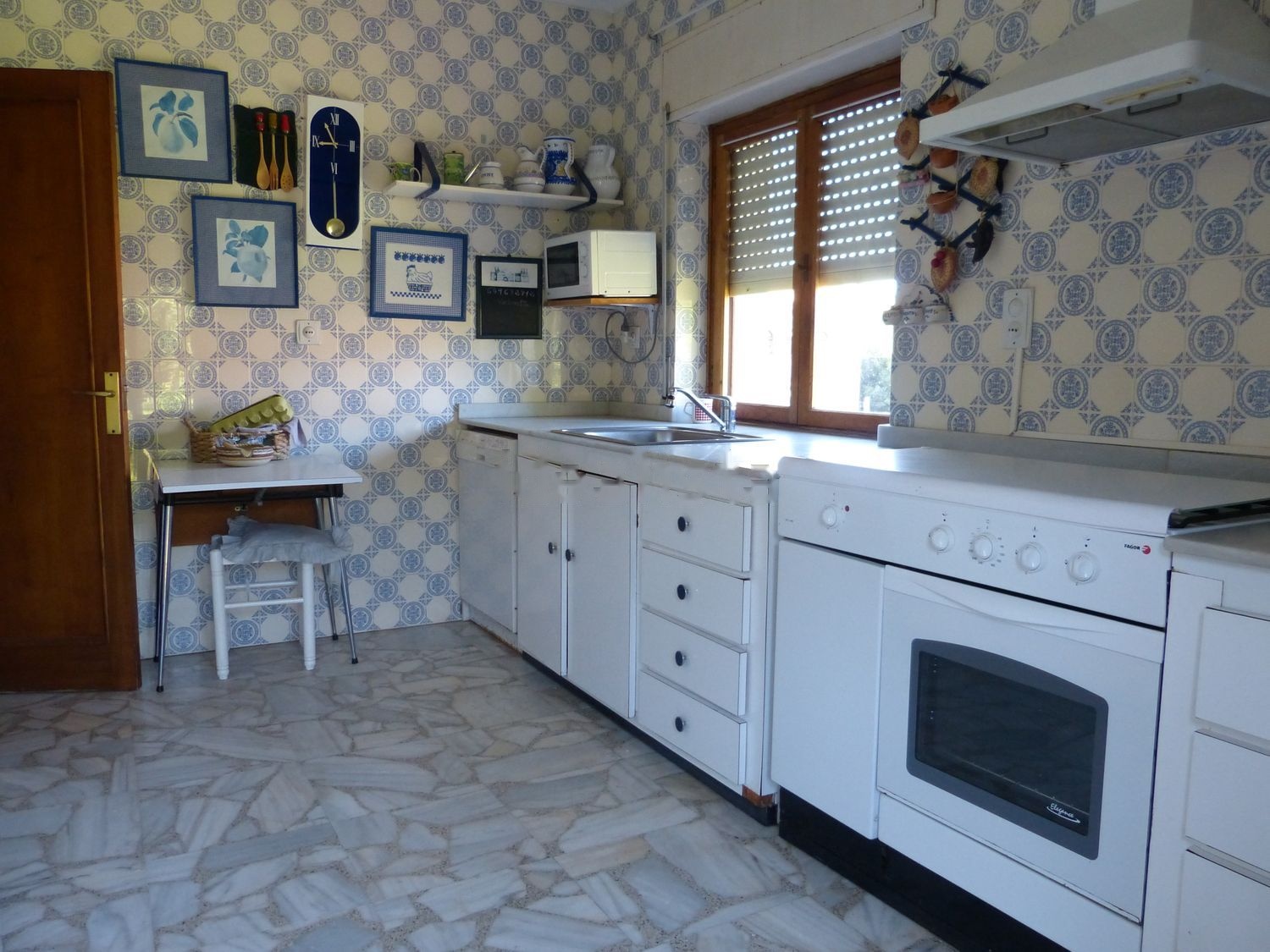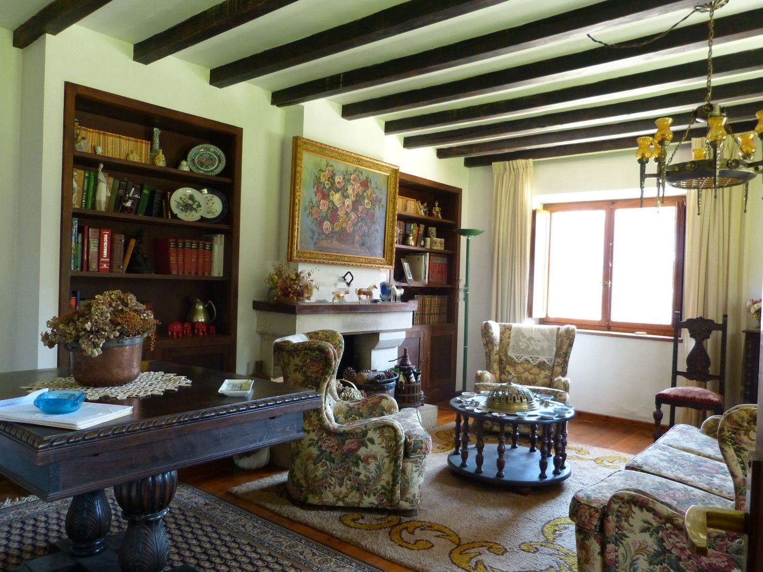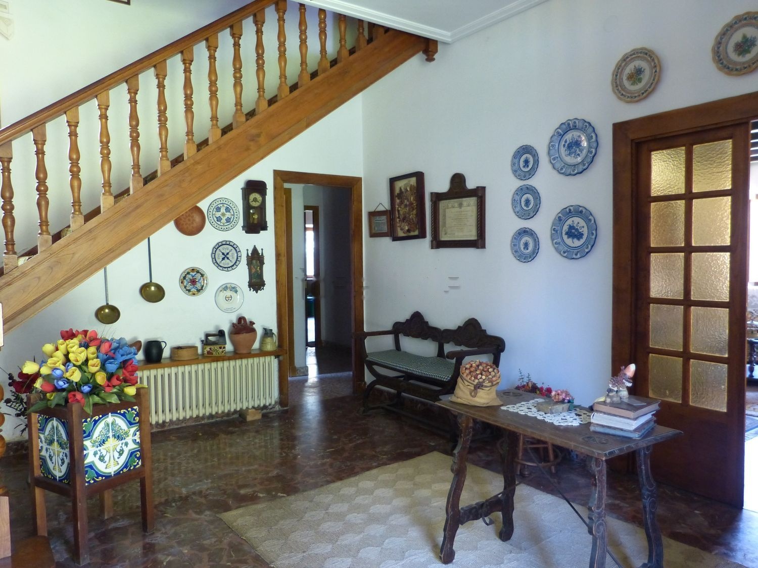 Toda la carpintería de la casa: puertas, ventanas, suelos de la primera planta, salón y escalera son de madera maciza de castaño.
