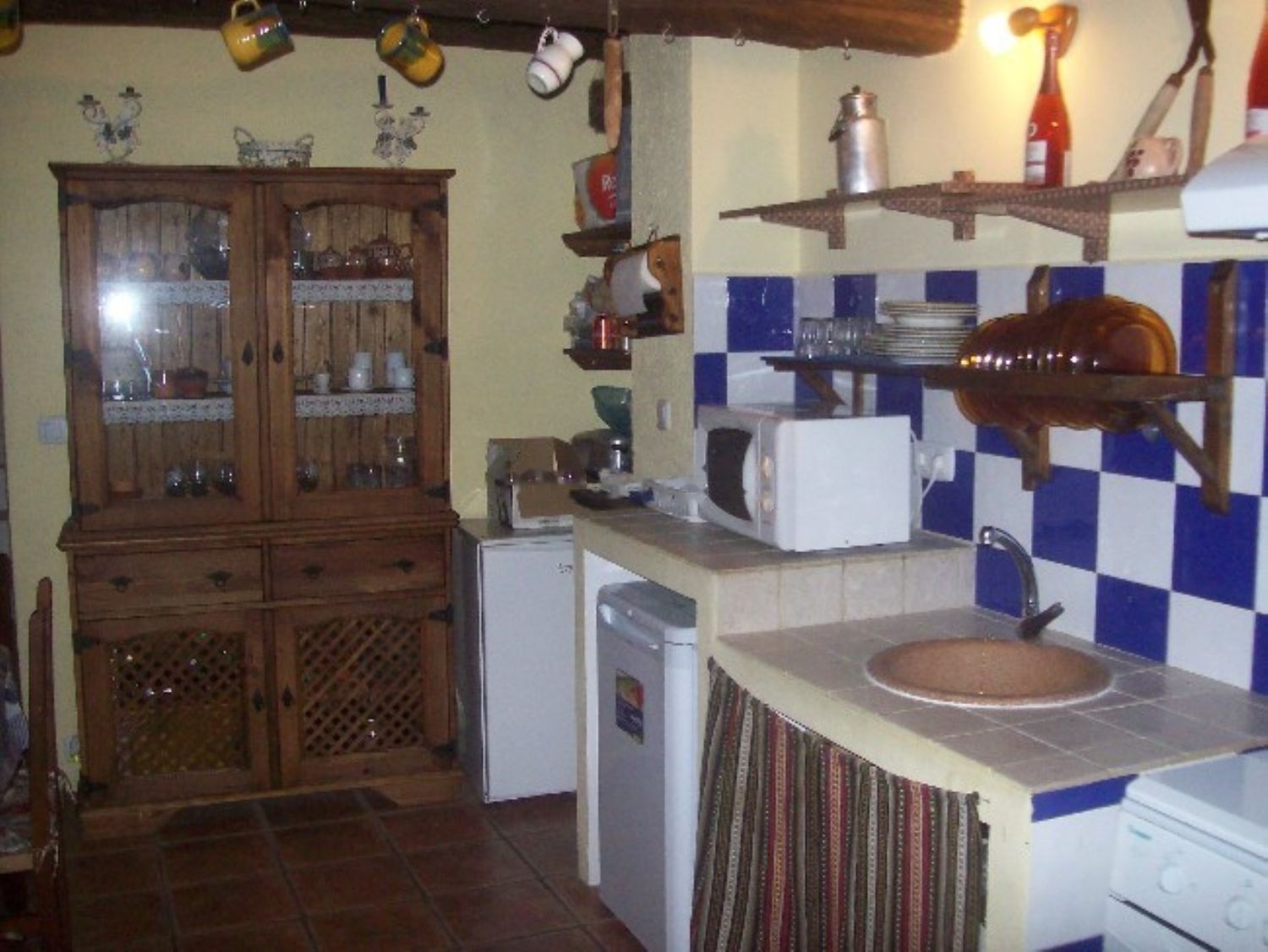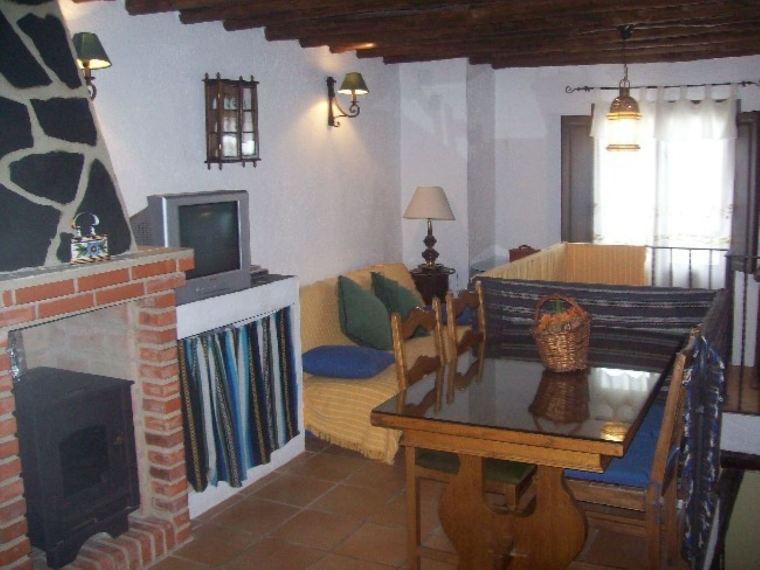 Está completamente equipada (3 frigoríficos, lavadora, 2 microondas, 2 hornillas con horno, cafetera eléctrica, 2 extractores de humo, 2 televisores, 2 calentadores automáticos, equipo de música, mesas, sillas, cubertería, vajilla, etc). Dispone de 3 camas de matrimonio, 2 camas individuales, 2 sofás camas y dos camas plegables). Además dispone de dos chimeneas con leñera.