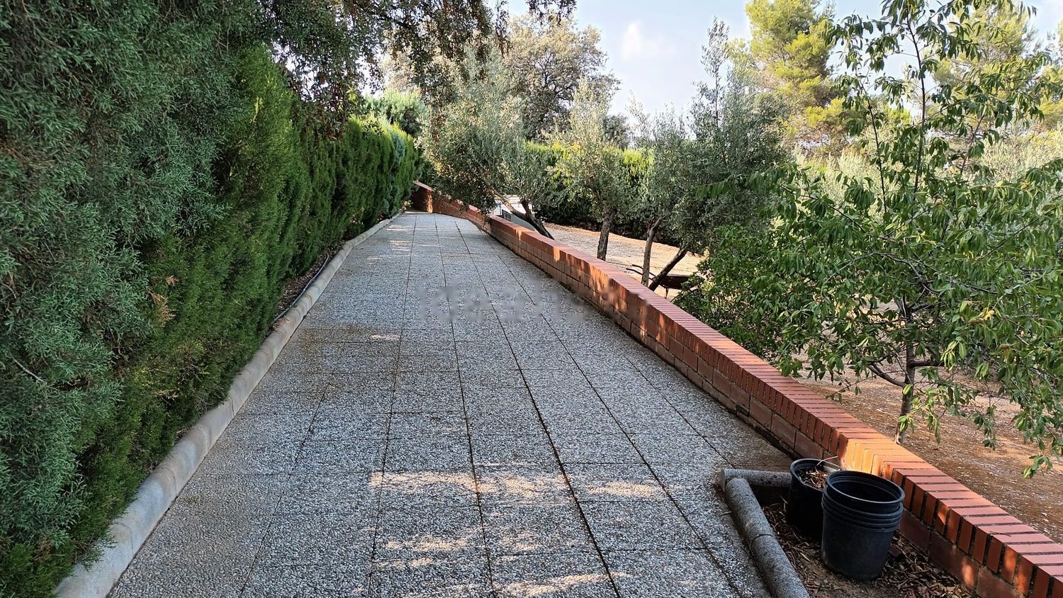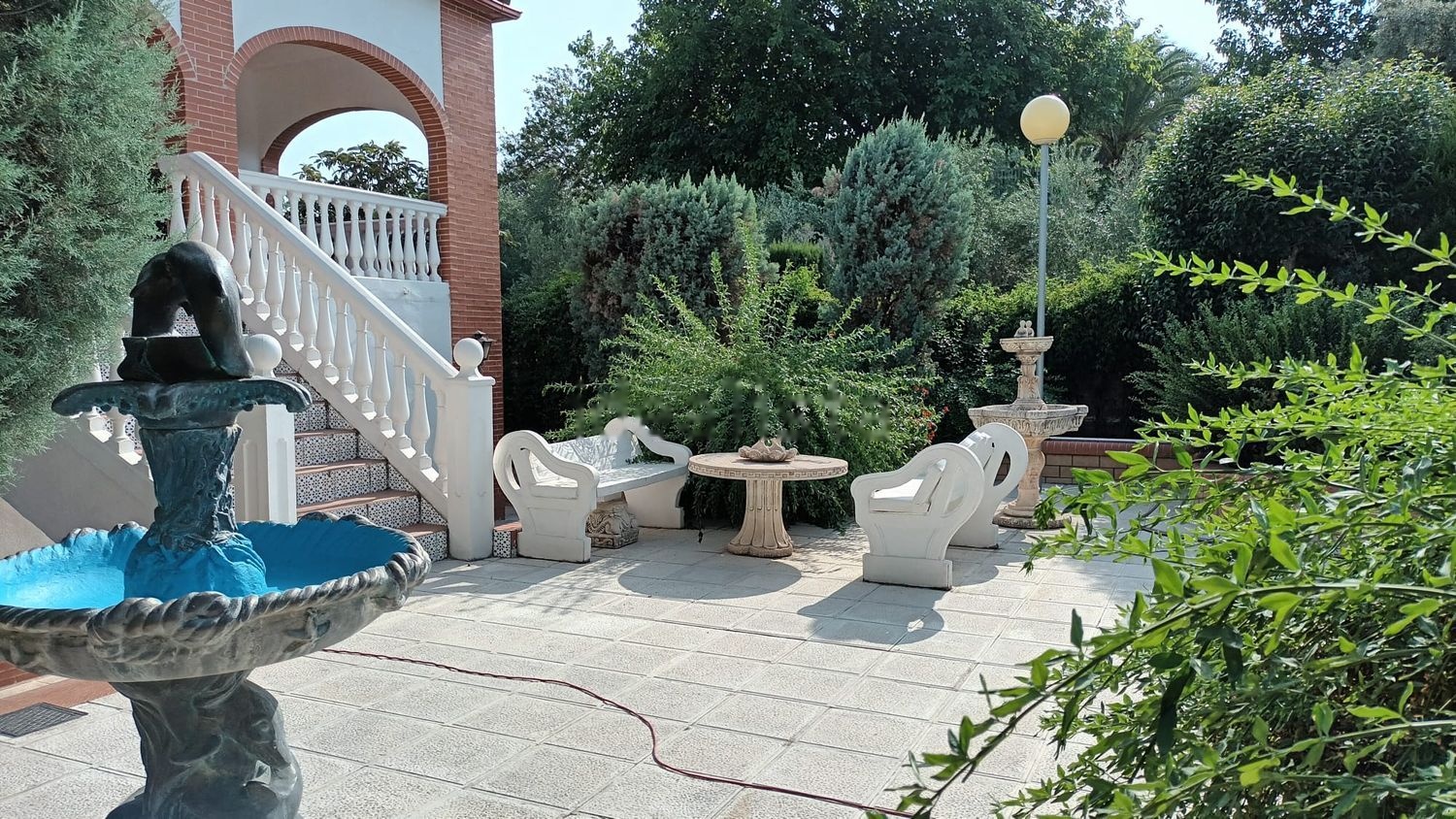 En el exterior está la piscina vallada, una fuente, zona de área de descanso con bonitas zonas ajardinadas, setos y arboledas toda la zona de los alrededores se encuentra embaldosado y cementado. 2 porches con vistas increíbles. Además incluye 70 olivos y arboles frutales.