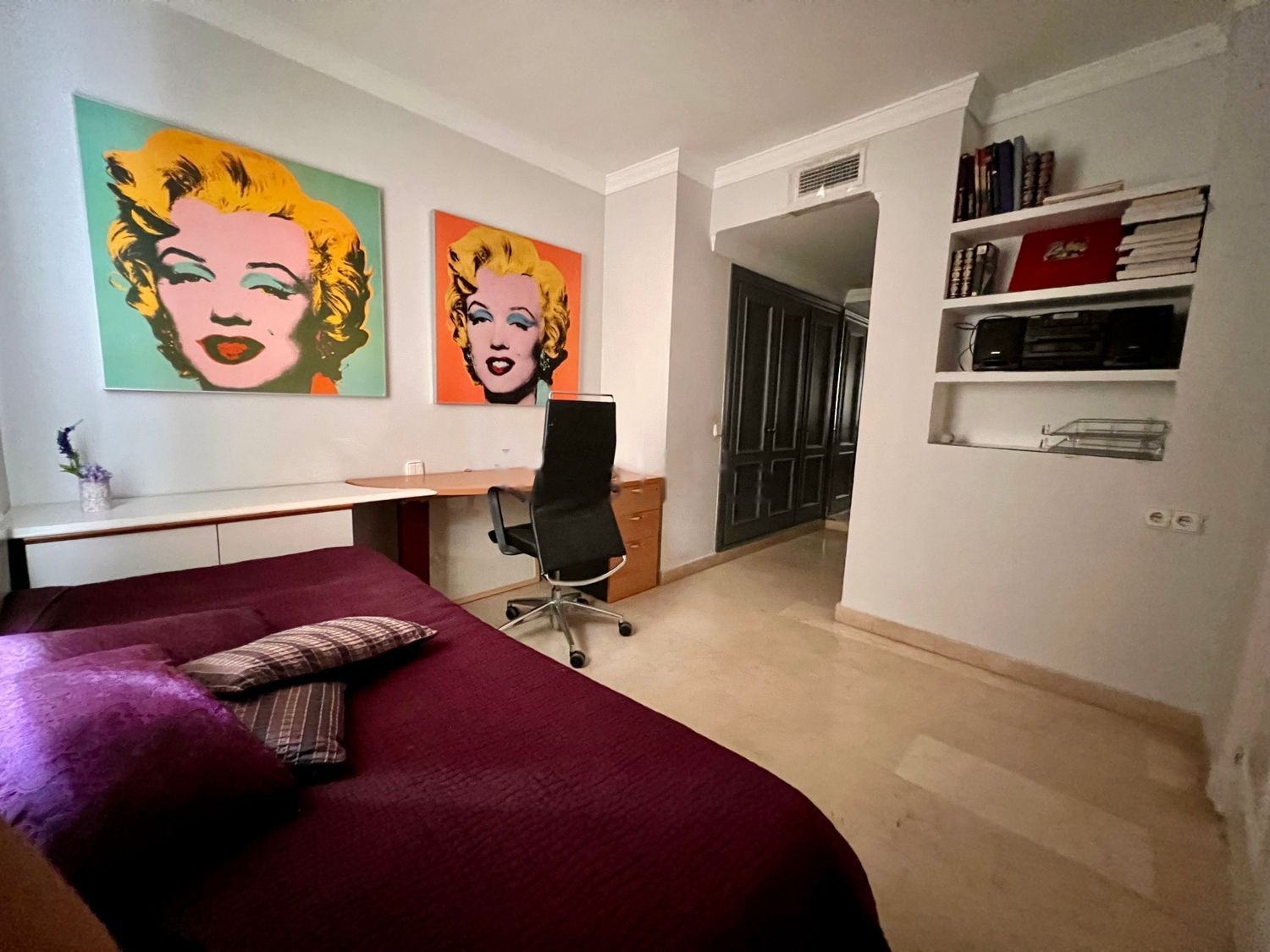 Toda la superficie interior del inmueble tiene suelos de mármol, hay aire acondicionado central y todas las ventanas tienen verjas. En el salón además de persianas venecianas tenemos una verja interior de tijera con cerradura especial de acero.