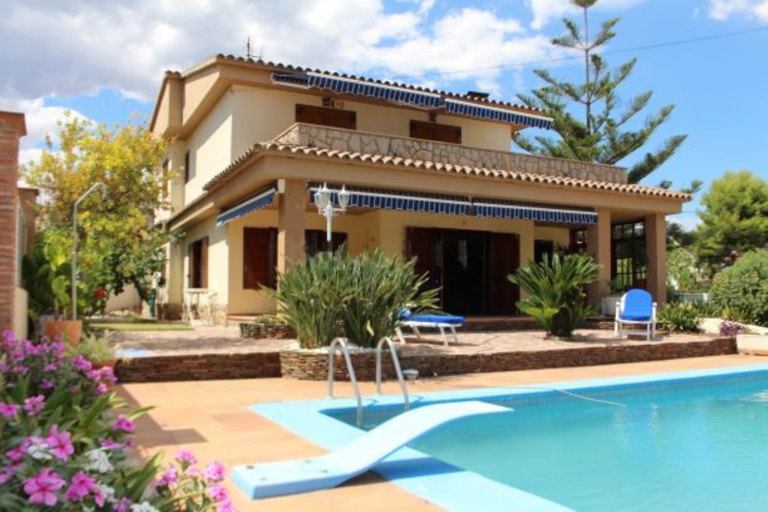 La vivienda consta de 3 plantas. El sotano dispone de 2 habitaciónes, barbacoa y parking para 5 ó 6 coches. La planta baja consta de cocina con puerta a terraza posterior, amplio salón con chimenea/cassette y terraza frontal, un baño y una habitación. Y la planta primera contiene 4 habitaciónes, terraza y 2 baños. Todas las habitaciones disponen de armairos empotrados. Cocina equipada con todos los electrodomésticos. Piscina de 9*4,5 m2 más menos y zona ajardinada. La parcela tiene una superficie aproximada de 600 m2. Ubicación ideal a 5 minutos andando del centro de Benicasim pueblo y a 5 minutos andando de la playa del Torreón Bernat. Dispone de servicios muy próximos como farmacia, restaurantes, ambulatorio, supermercados, etc.