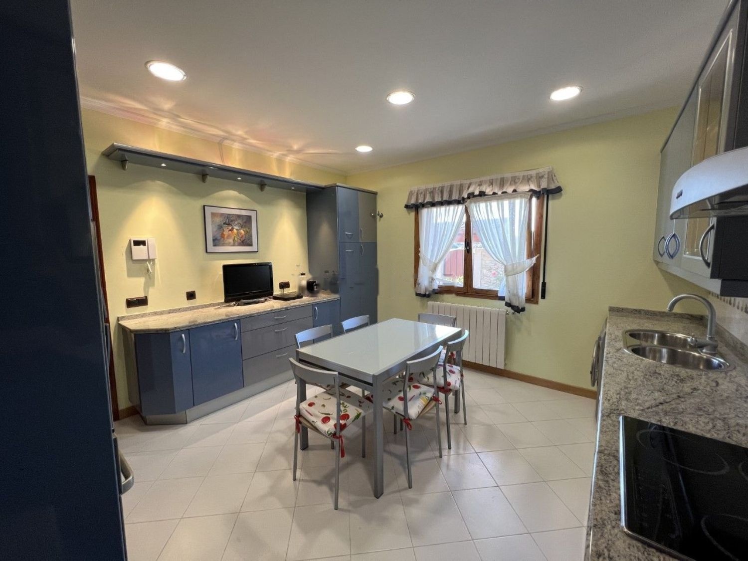 La vivienda se distribuye en una única planta con rampa de acceso facilitando el movimiento de personas con movilidad reducida, En el recibidor encontramos la entrada a una zona de salón comedor con una preciosa chimenea, y al otro lado una cocina con todos los electrodomésticos.