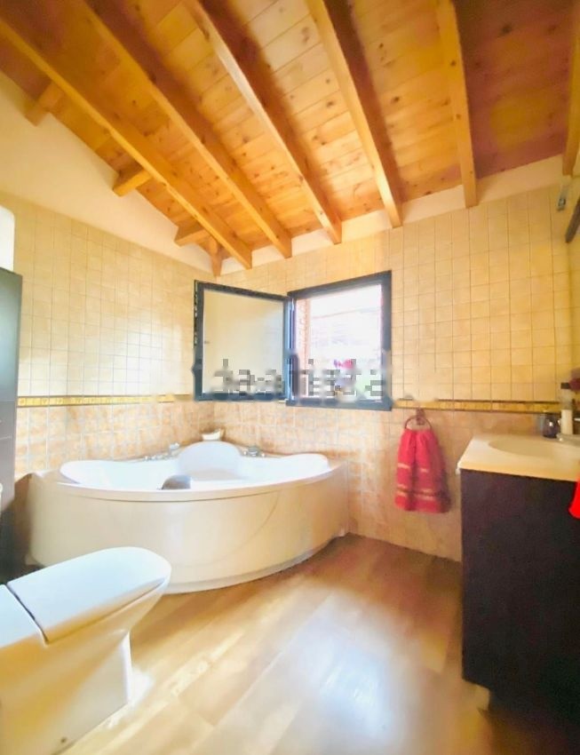 La primera planta es tipo buhardilla, donde también encontramos una habitación doble con vestidor y balcón con vistas al parque natural. El baño tiene bañera de hidromasaje.