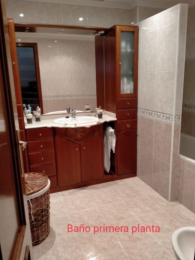 Para entrar a vivir. Luminoso. En la primera planta se encuentra la cocina de gran tamaño, salón comedor y baño completo. Del salón se sale a la terraza de unos 16 metros cuadrados y al jardín de unos 45 metros cuadrados. En la segunda planta, cuatro habitaciones y baño completo. De una de las habitaciones se sale al balcón que da al jardín, orientado al oeste. En la tercera planta dos habitaciones y baño completo. Una de las habitaciones con dos camas empotradas y la otra, muy grande, con tres camas. Garaje amplio, para tres coches, con zona de trabajo, armarios y pequeño trastero. Muy luminoso todo el día. Totalmente amueblado.