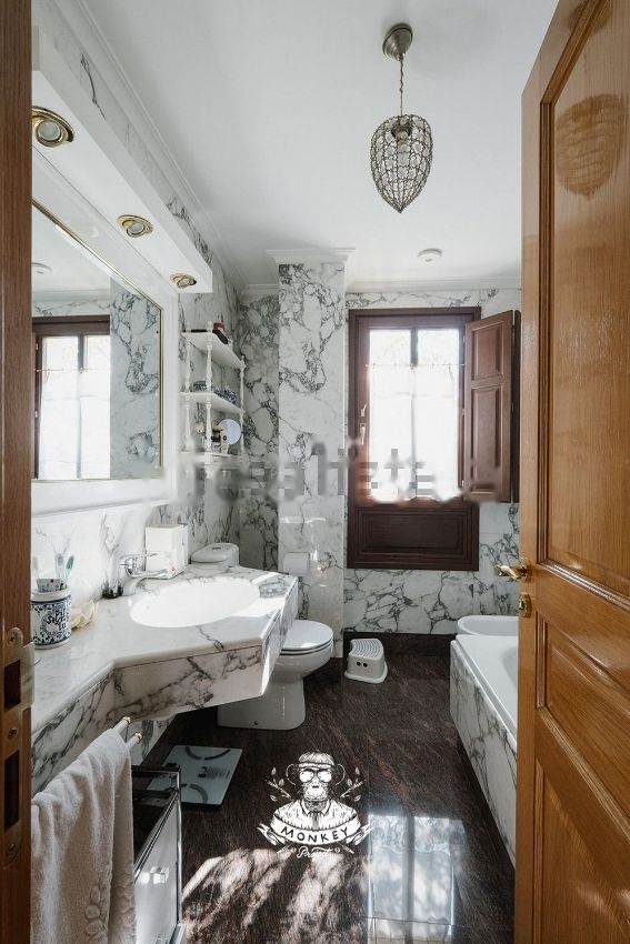 Casa del año 2000 con una superficie construida de 379 m², terraza de 60 m², jardín privado de 65 metros, dividida en cuatro plantas con ascensor particular desde el garaje, 3 habitaciones dobles, 2 habitaciones individuales, 4 baños de marmol, gran cocina amueblada con barra de doble asiento e incluye comedor de 16m2; espacioso y luminoso salón comedor con amplios ventanales y chimenea, salón de juegos de 42 m2 y garaje privado para 5 coches con bodega; armarios empotrados en todas las habitaciones, carpintería exterior madera especial, cuarto de calefacción; todo muy soleado, todas las orientaciones, ubicación en esquina. En la Avda. Monasterio de las Huelgas (LA CASTELLANA) al lado del Monasterio de las Huelgas.