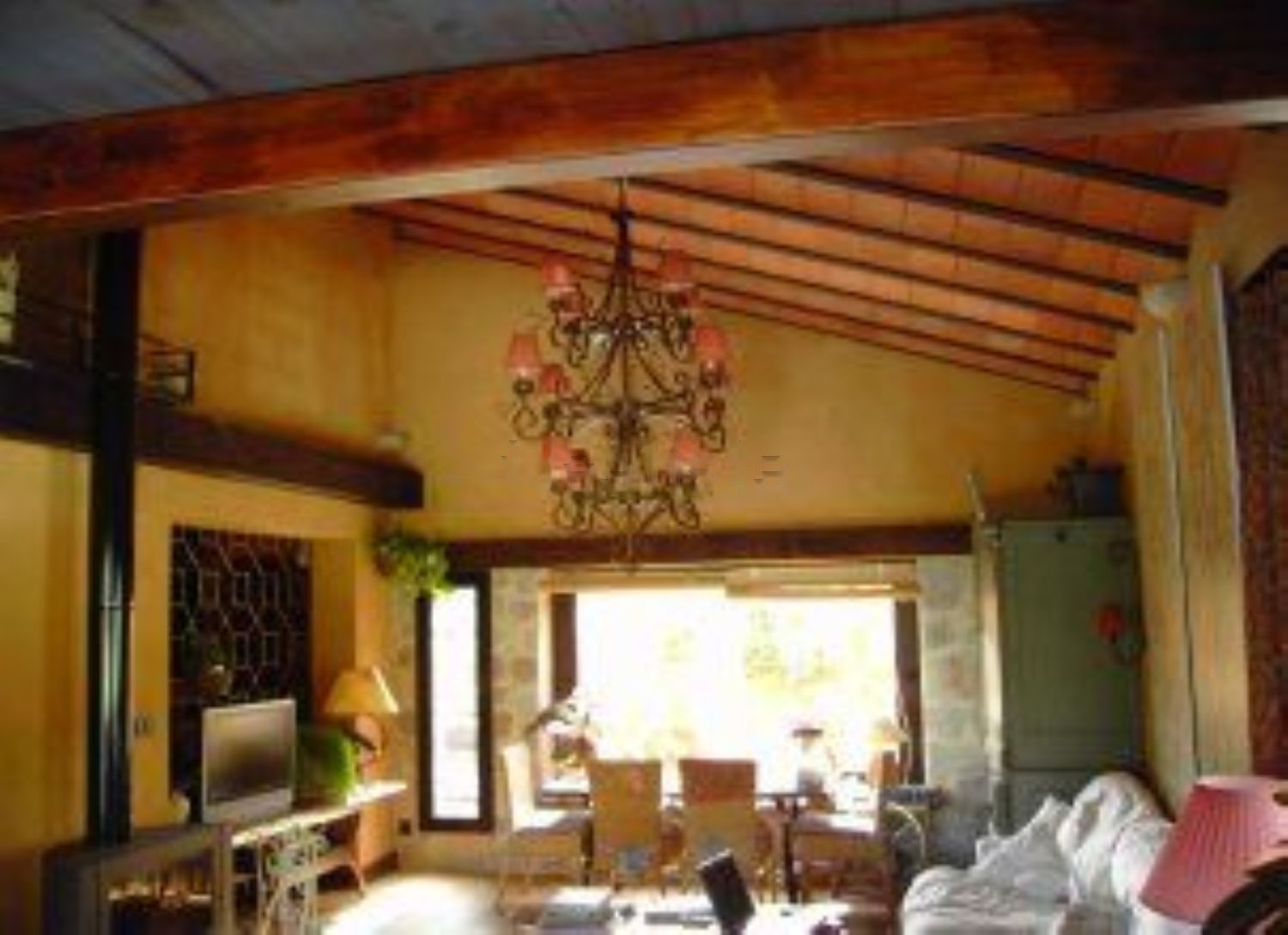 Cuenta con semisótano además de la casa principal, más otra habitación de 5x5 para lavandería aneja a la casa. Varias terrazas y porches; patio cubierto con cocina comedor rústico (barbacoa y horno de leña con chimeneas), y otro patio descubierto con acceso a la casa y al porche. 4 dormitorios (dos arriba con 2 baños, y dos abajo) muy espaciosos con grandes ventanales, uno de ellos suite con instalación para pequeña cocina.