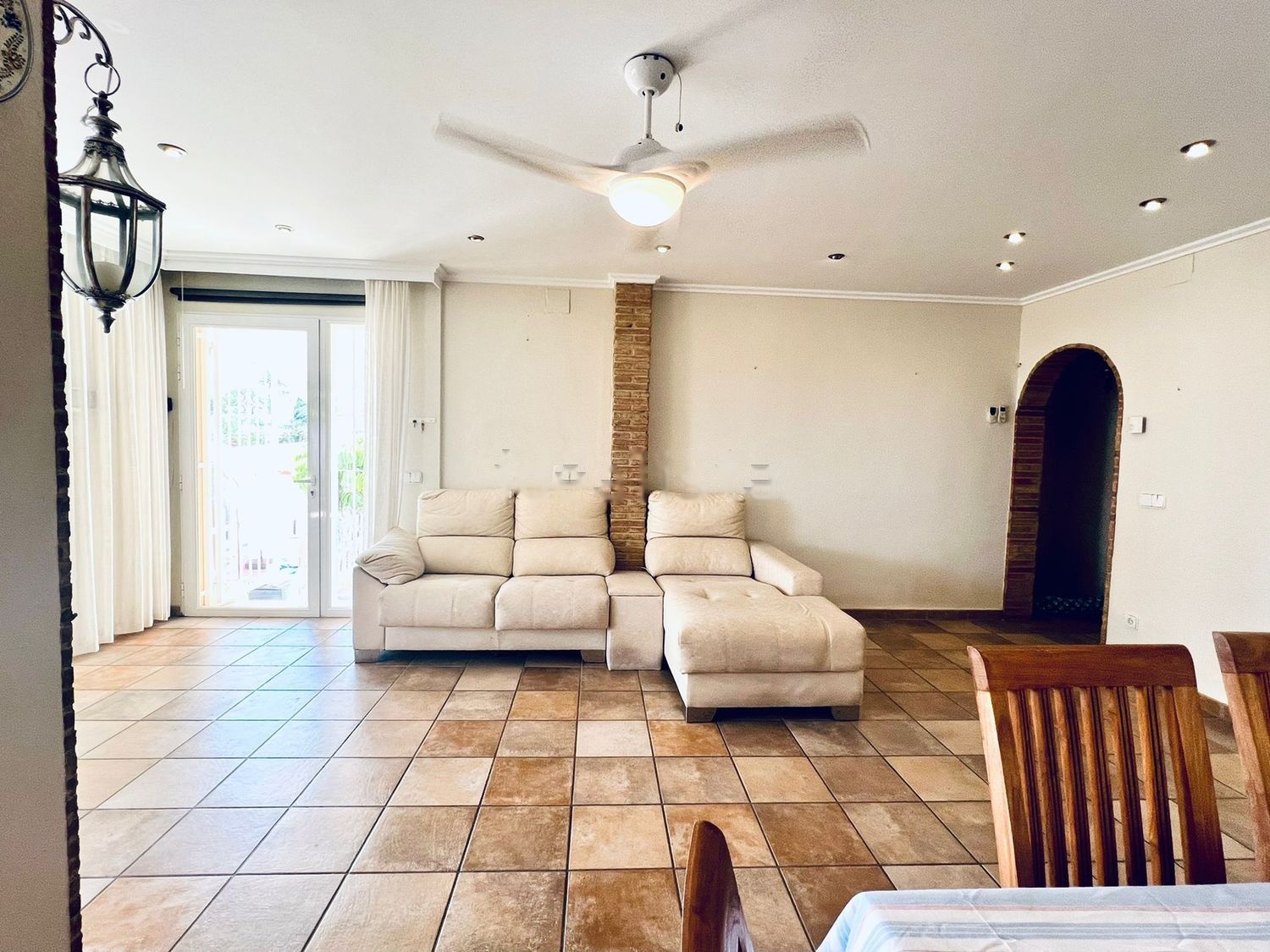 En la primera planta encontramos 2 dormitorios, un vestidor, un baño en suite y un aseo, un amplio salón comedor, comunicado por un lado a una cocina equipada, y por el otro a un terraza techada y acristalada. Esta ultima con vistas a la piscina y comunicada a otra terraza abierta. Delante de la cocina encontramos otra zona techada, perfecta como comedor exterior o zona de barbacoa. Cabe destacar la instalación de suelo radiante en toda la planta baja, lo cual nos ofrece una temperatura homogénea y agradable, ademas del ahorro energético. Además, todas las habitaciones poseen aire acondicionado y ventiladores de techo.