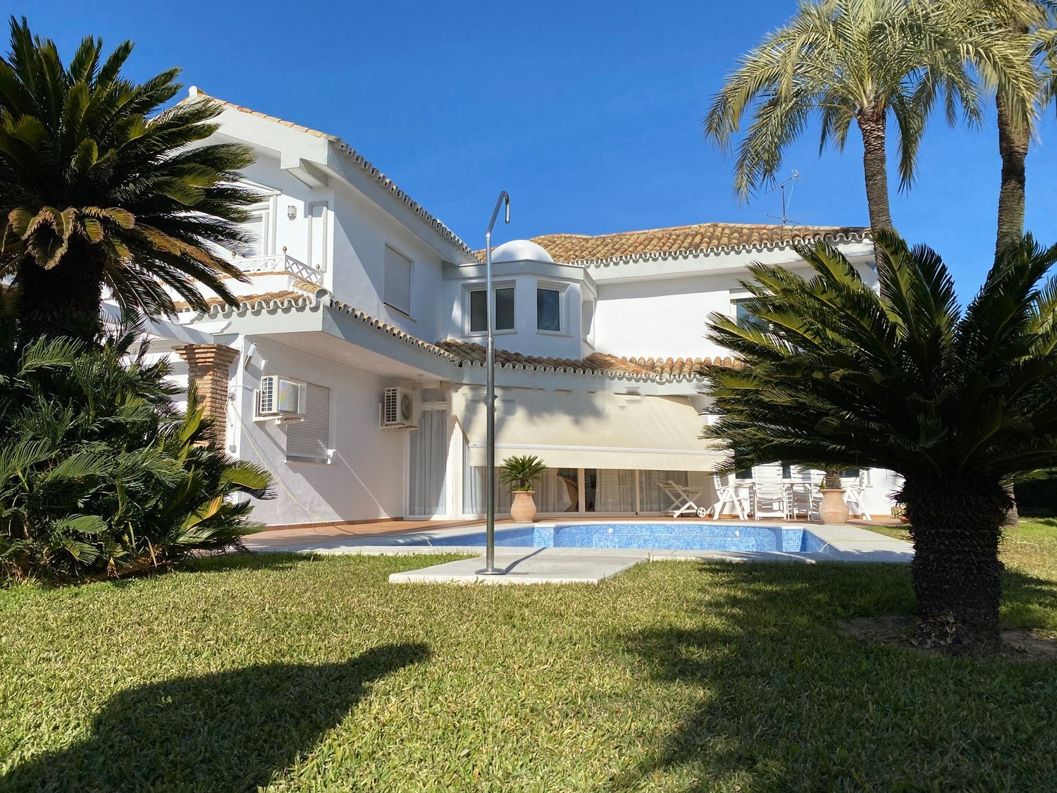 Magnífico chalet en urbanización Colina Blanca. En perfecto estado y recientemente reformado. Consta de dos plantas en una estupenda parcela de más de 1000m2. En la planta baja se encuentran hall señorial de entrada, salón con chimenea, amplia cocina, sala de plancha, porche acristalado al jardín, 3 dormitorios y dos baños; magnifica piscina privada en la parcela y preciosos y cuidados jardines. En planta superior 4 magníficos dormitorios es suite con 4 baños. Semisótano bodega/trastero de unos 50 m2, e independientemente garaje con puerta automática con cabida para dos o tres vehículos. Buenas calidades de construcción, y reforma integral en 2021. Ver sin compromiso, precio negociable.