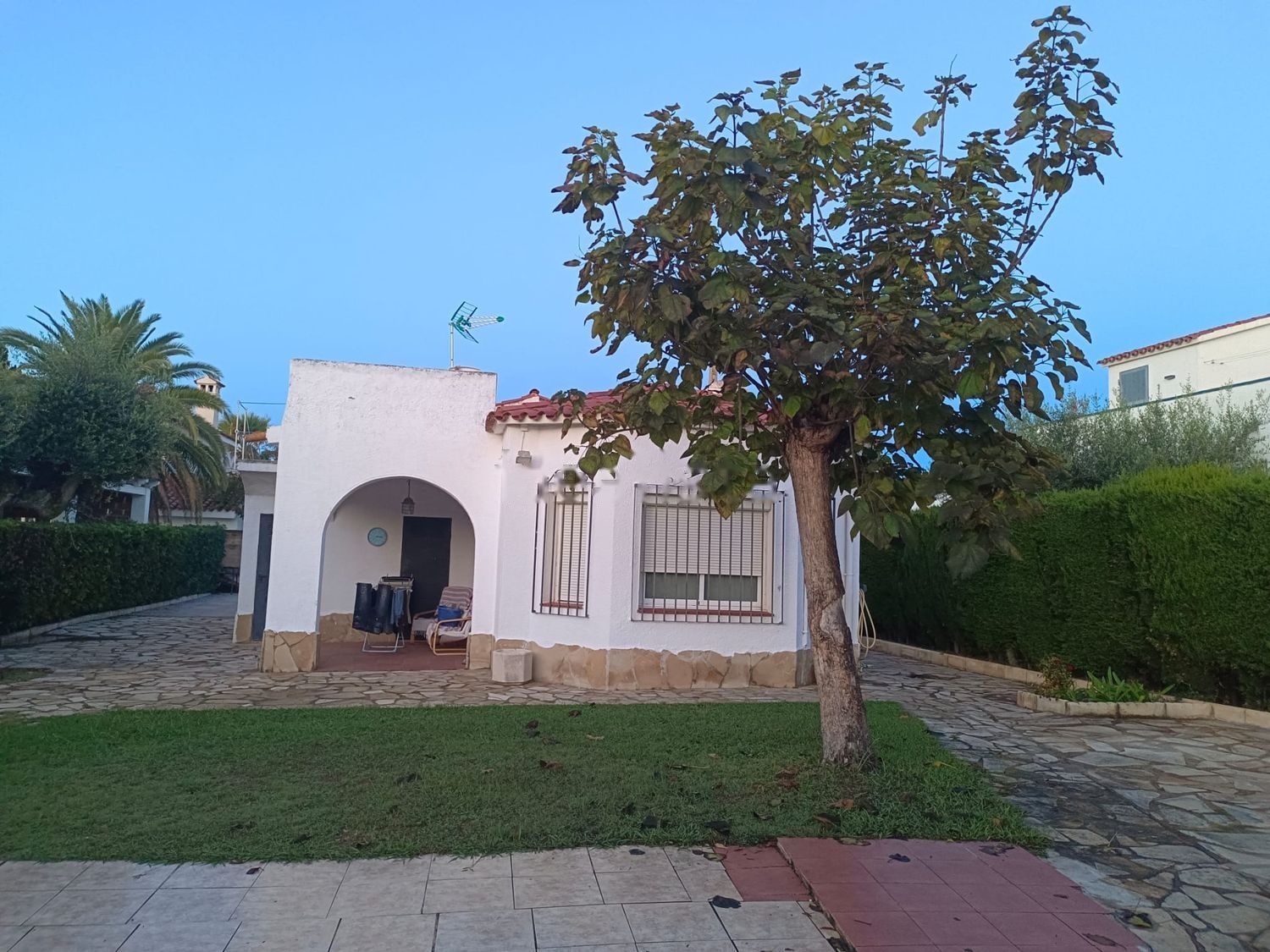 Chalet independiente de una sola planta con posibilidad de construir una segunda en parcela de 450m². Reformada hace 20 años y en perfecto estado para vivir todo el año. 3 dormitorios dobles con armarios empotrados. 2 baños completos, uno con ducha y otro con bañera. Cocina independiente completa, vitrocerámica. Salón con chimenea y acceso al porche y al jardín. Porche con trasteros y habitación con caldera de gas natural nueva. Radiadores en todas las habitaciones. Ventanas de aluminio y climalit. Puerta motorizada para acceso de vehículos. Zona muy tranquila y a unos 300 de la playa.