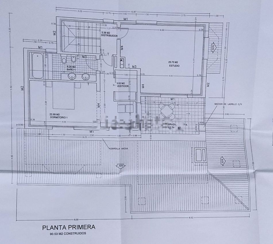 La planta superior de 90,5 m2 consta de tres dormitorios (uno de ellos con terraza) con sus correspondientes armarios empotrados y un baño; el dormitorio principal es muy amplio e incluye vestidor, acceso a la terraza y gran baño con ducha hidromasaje.