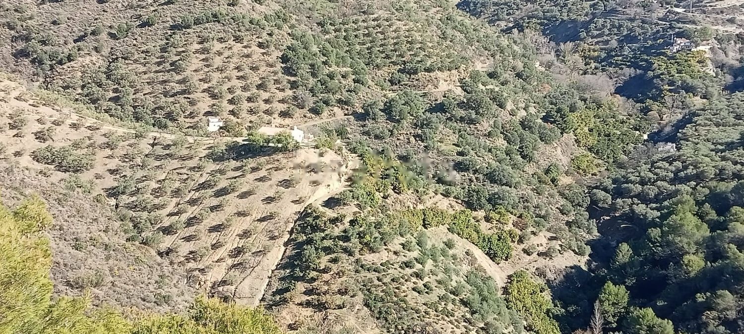 En un enclave idilico, los cortijos presiden una colina y su parcela llega hasta el rio. En el terreno se cultivan aguacates, olivos y citricos. Todo está con sistema de regadio por goteo.