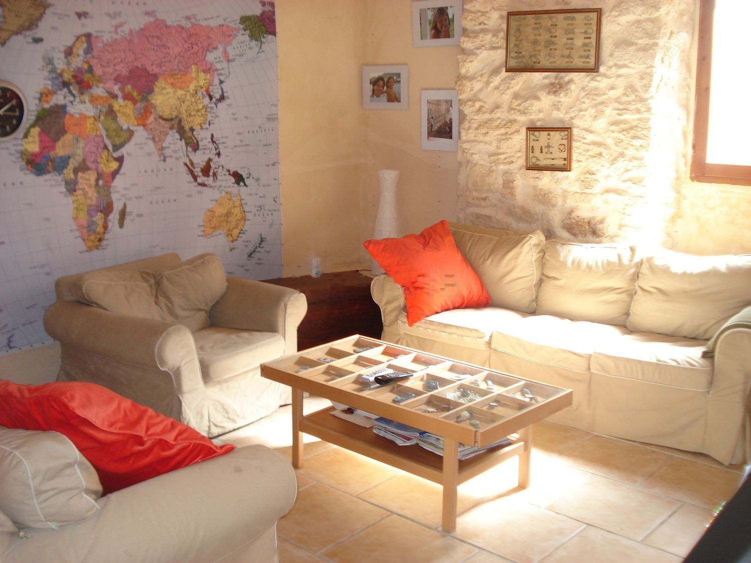 La casa, con jardín y 2 terrazas de orientación distintas permite tomar el sol todo el día. y calefacción en toda la casa. Aquí encontrara un equipo con 7 aparatos interiores. PLANTA BAJA Gran espacio abierto en planta baja: salón con chimenea, comedor, amplia y moderna cocina central equipada con todos les electrodomésticos necesarios. Amplia zona de despacho abierta al salón. Habitación “La Suite” con baño completo propio. EXTERIOR: Jardín con mesa grande, (10/12 personas) Agradable piscina (unos 5,5 m3). Barbacoa de leña o gas. Tumbonas con sombrilla, árboles frutales a disposición de los huéspedes. Cuarto de lavandería con lavadora de 7 kg. PLANTA 1 La Gran Suite que se compone de un dormitorio amplio con mesa y sillas, un vestidor, así como un baño completo y una terraza, ambos privados. Las habitaciones A, B y C. Un baño completo con ducha, lavabo e inodoro, así como otro inodoro separado. PLANTA 2 Una sala de lectura-relax (Chill out) Una terraza con vistas al castillo, al pueblo y al mar. Sillones y mesa.