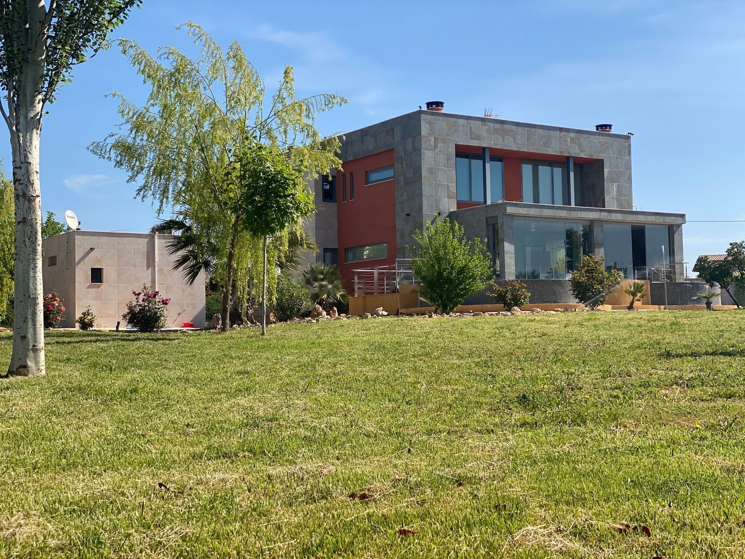La casa cuenta con todo tipo de detalles, una cocina recién renovada, tres dormitorios, un despacho, cuatro baños, un sotano con un garaje para 2 vehículos y un salón de estar grande. Tambien dispone de una barbacoa independiente con un baño, una piscina climatizada, y otro aparcamiento para un coche en la placeta delantera de la vivienda. Tambien tiene un jardin de unos 2.000m2 aproximadamente.