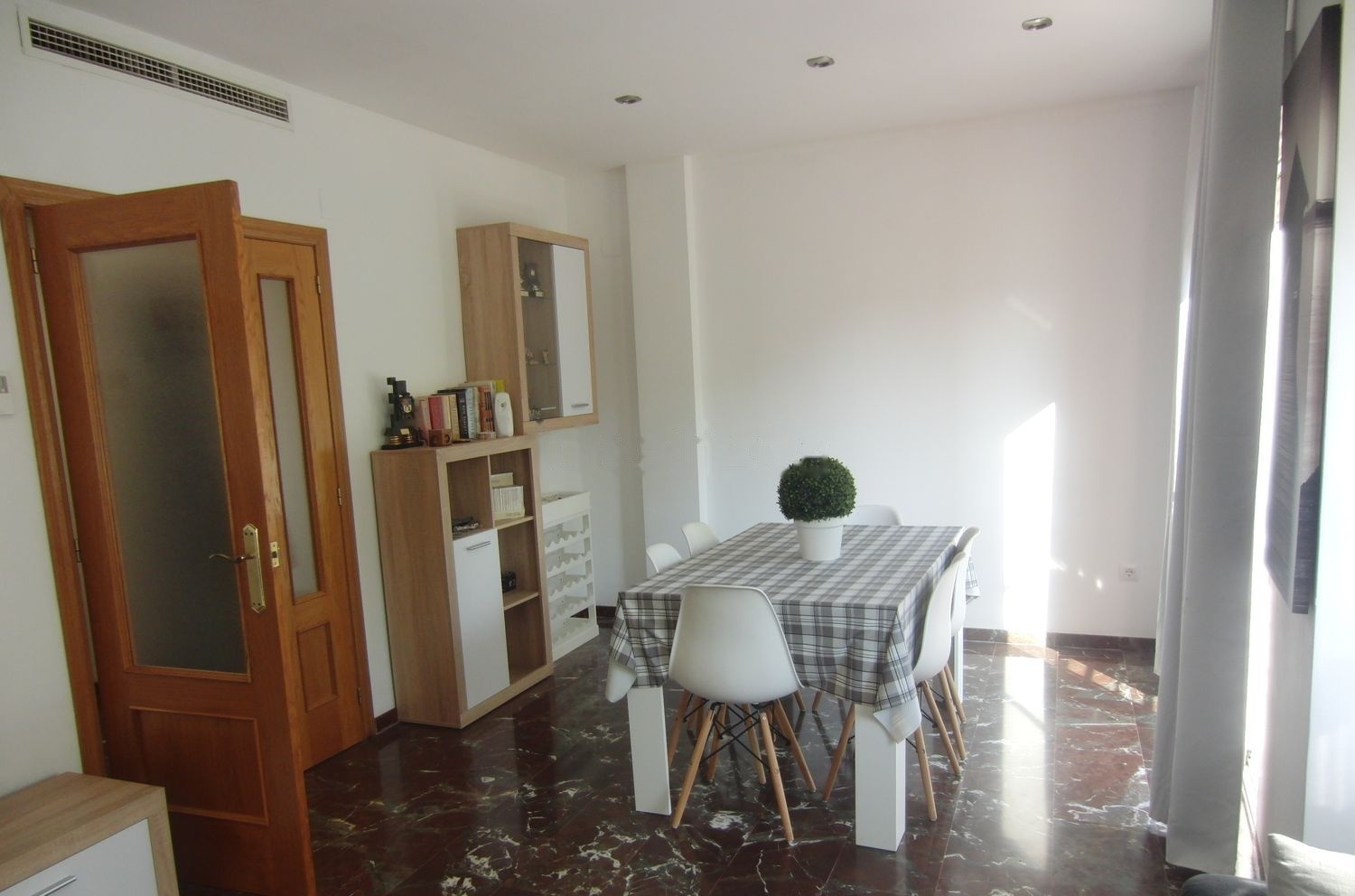 En la primer planta cuenta con un amplio comedor con balcón y ventana con vistas al parque, además de un baño completo con plato de ducha, amplia cocina con salida a galería con pila de lavadero y lavadora y secadora, para esta planta se dispone de un aire acondicionado (frio/calor) centralizado por conductos.