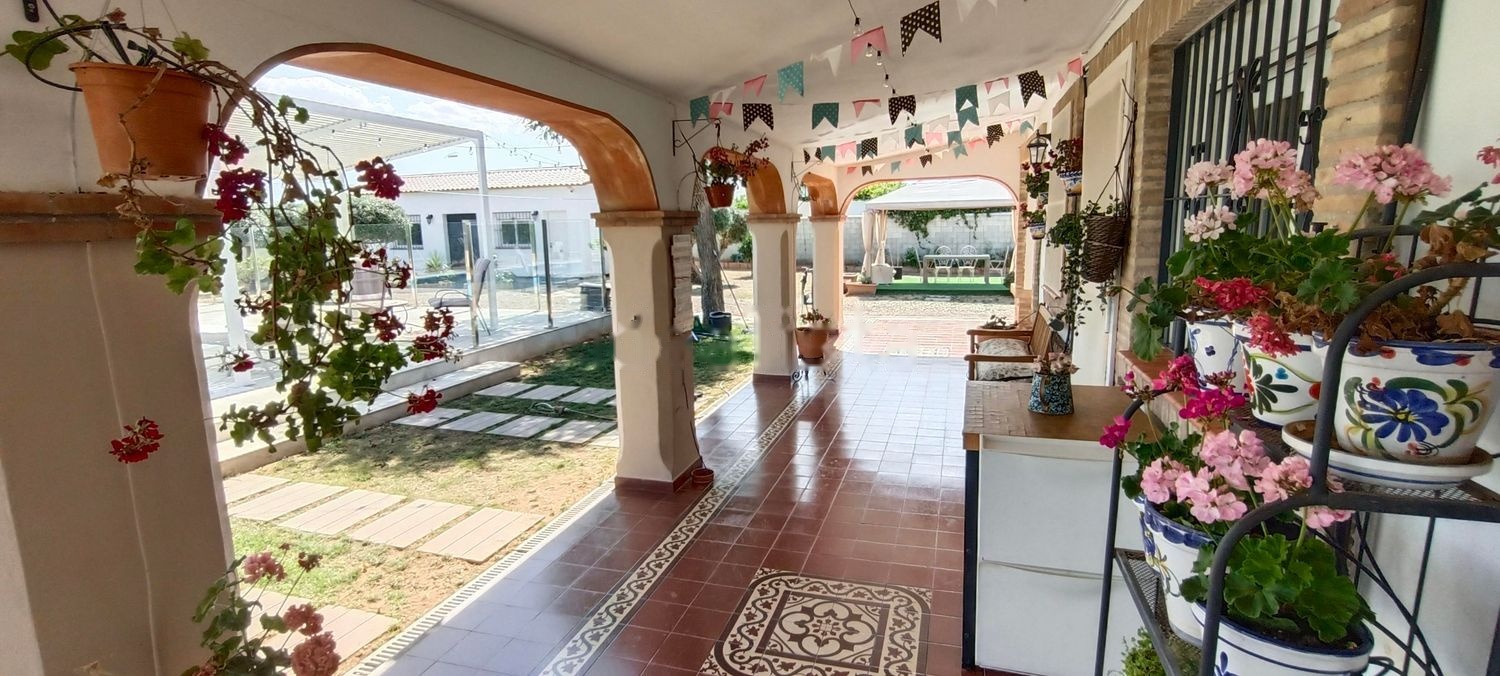 A tan sólo 20 minutos de Sevilla se encuentra la urbanización Los Jinetes, donde podrás descubrir esta espaciosa casa renovada y en perfecto estado para entrar a vivir, con una superficie de 265 m2 sobre parcela de 2.669 m2.