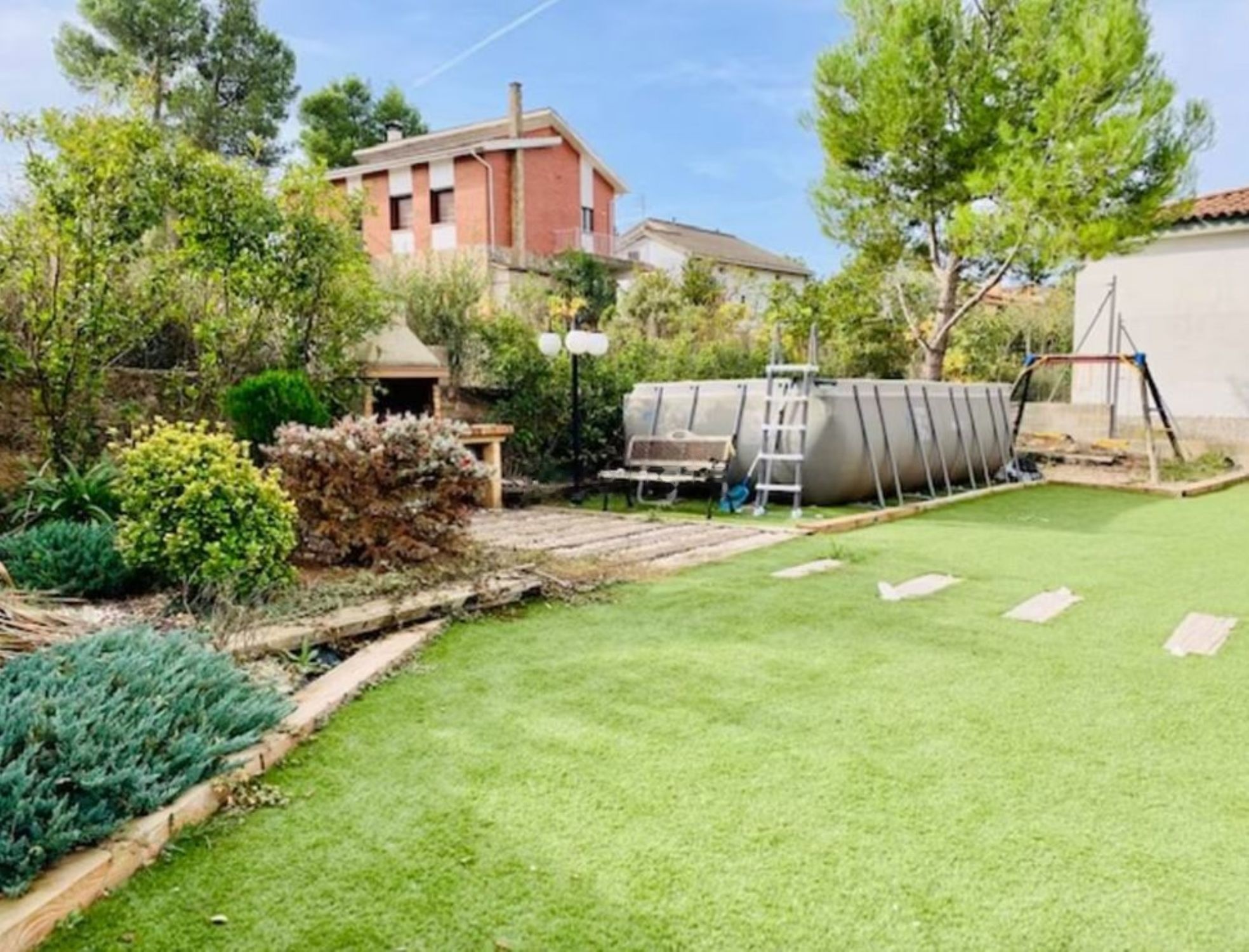 Se vende casa de particular a particular. En venta, espectacular casa chalet ubicada en la urbanización del Serrat de Castellnou de Bages, a 3 km de SantpedorCasa construida en el año 2007, estado impecable, de 400 m², con jardín de 120 m², barbacoa de obra, piscina privada, consta de 3 habitaciones + 2 baños, 1 habitación, es suite con baño y vestidor, más 2 lavabos, estudio con terraza de 140 m², cocina office, lavadero, calefacción de gasoil y aire acondicionado, plaza de garaje, trastero, la casa se vende sin muebles, Ventanas aluminio con persianas automáticas en toda la casa, Vídeo portero y puertas de haya vaporizada, La casa está bastante domotizada.Está situada en urbanización muy tranquila, rodeada de naturaleza, muy cerca de transporte público, a 3 minutos en coche del pueblo de Santpedor, con todos los servicios, y a 10 minutos de Manresa.