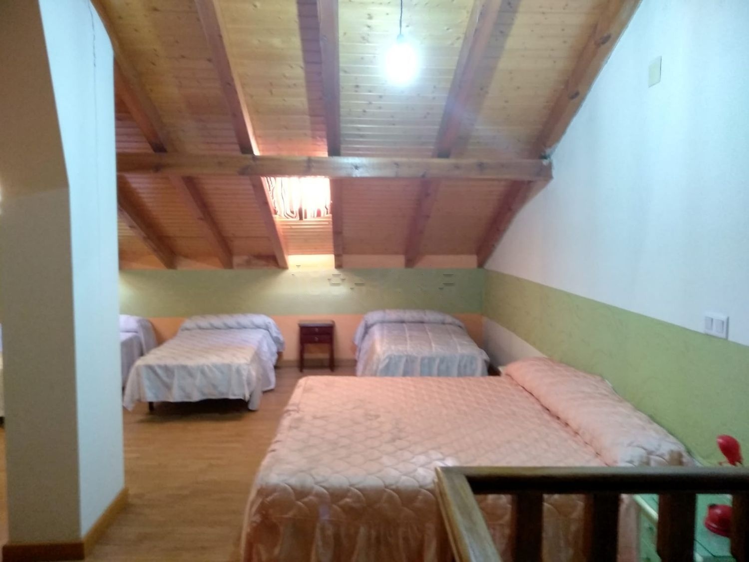 4 habitaciones dobles y amplia buhardilla diáfana en la que hay 7 camas más. Actualmente hay camas para alojar ampliamente a un mínimo de 17 personas.