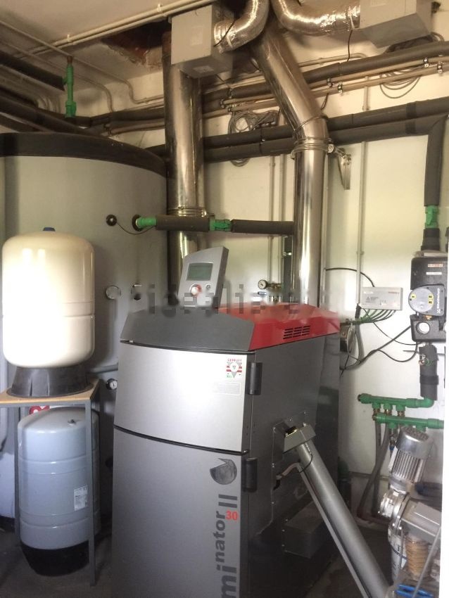 Totalmente autosuficiente; está provista de pozo propio, dos depósitos de agua, cuarto de instalación eléctrica, caldera de biomasa mixta (pellets+leña), con depósito para tres toneladas de pellets, calefacción con suelo radiante, placas termosolares, aerogenerador y generador de gasoil de apoyo.