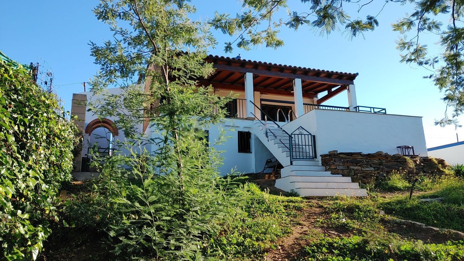 Casa de campo en La Codosera, situada en zona ZEPA a 2 km de las piscinas naturales y la Rabaza. En plena naturaleza, ubicada en un cerro precioso a 200 metros del río Gévora, con acceso directo y lindando con la carretera. Superficie total del terreno 5658 m2. Superficie total construida 150 m2. Superficie de la vivienda en una sola planta 80 metros cuadrados. Con pasillo central, 2 dormitorios, un baño, cocina, salón, cierre exterior en aluminio con ventanas y postigos en puertas practicables con cristales Climalit, dos porches de madera adosados a la vivienda, cochera para dos vehículos con entradas independientes, amplias terrazas rodeando la vivienda con cerramientos, almacén, almazara propia para la extracción del aceite de oliva, piscina con depuradora, aljibe de 24000 litros automatizado con el pozo, riego por goteo para el huerto y todos los árboles sectorizado por calles, pozo de sondeo legalizado en la Confederación hidrográfica del Guadiana, leñero con capacidad para 2500 kg de leña, 150 olivos de la variedad arbequina, huerto de 300 metros cuadrados, 10 naranjos, limoneros, granado, ciruelo, Higueras, Higueras chumba, melocotonero. Quedando libre muchísimo espacio para poder plantar más árboles frutales. Todo con riego por goteo, una perrera/gallinero con agua de red pública y electricidad. SERVICIOS PÚBLICOS: electricidad y agua sanitaria de red, recogida de basura, servicio de correos, alumbrado público en acceso y entrada principal, excelente cobertura telefónica y de datos.