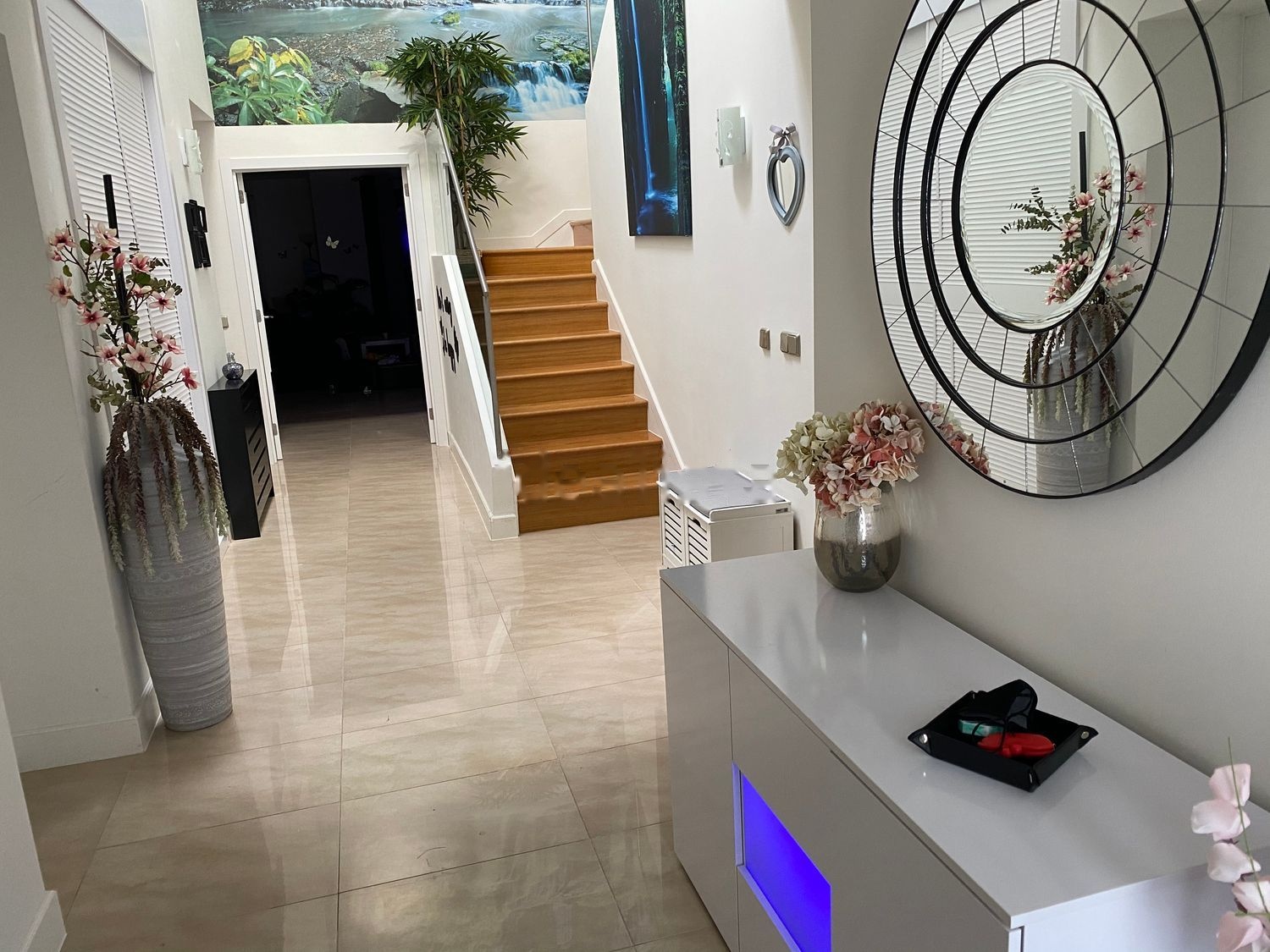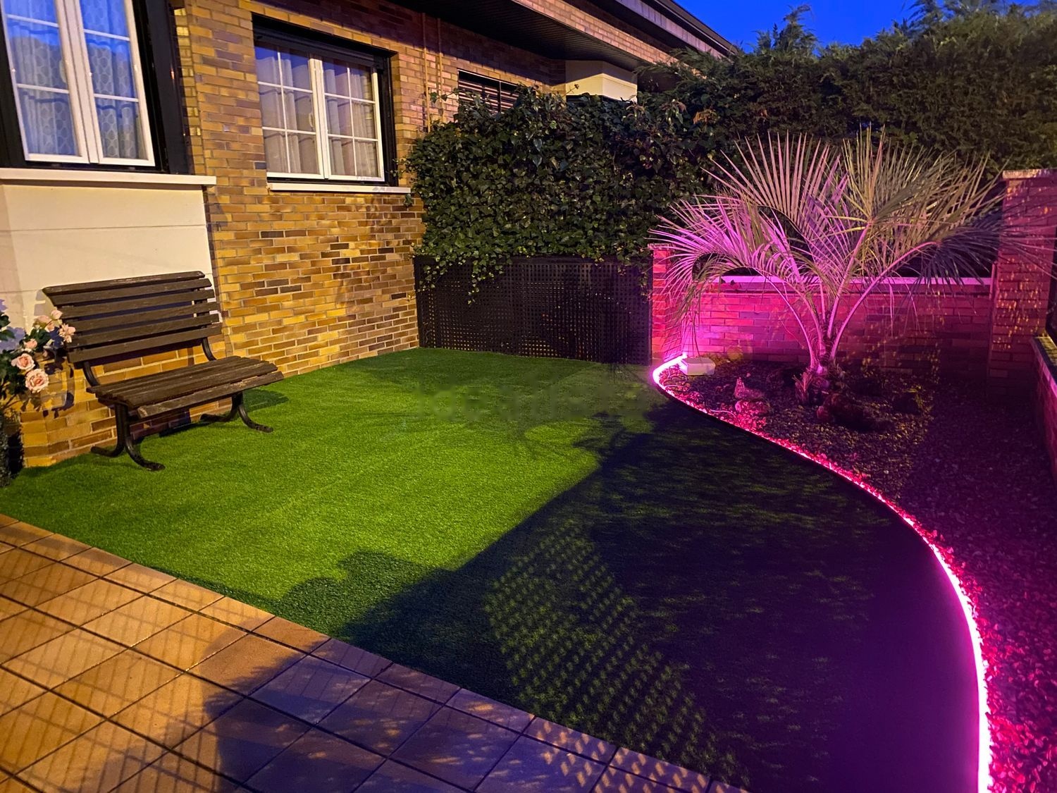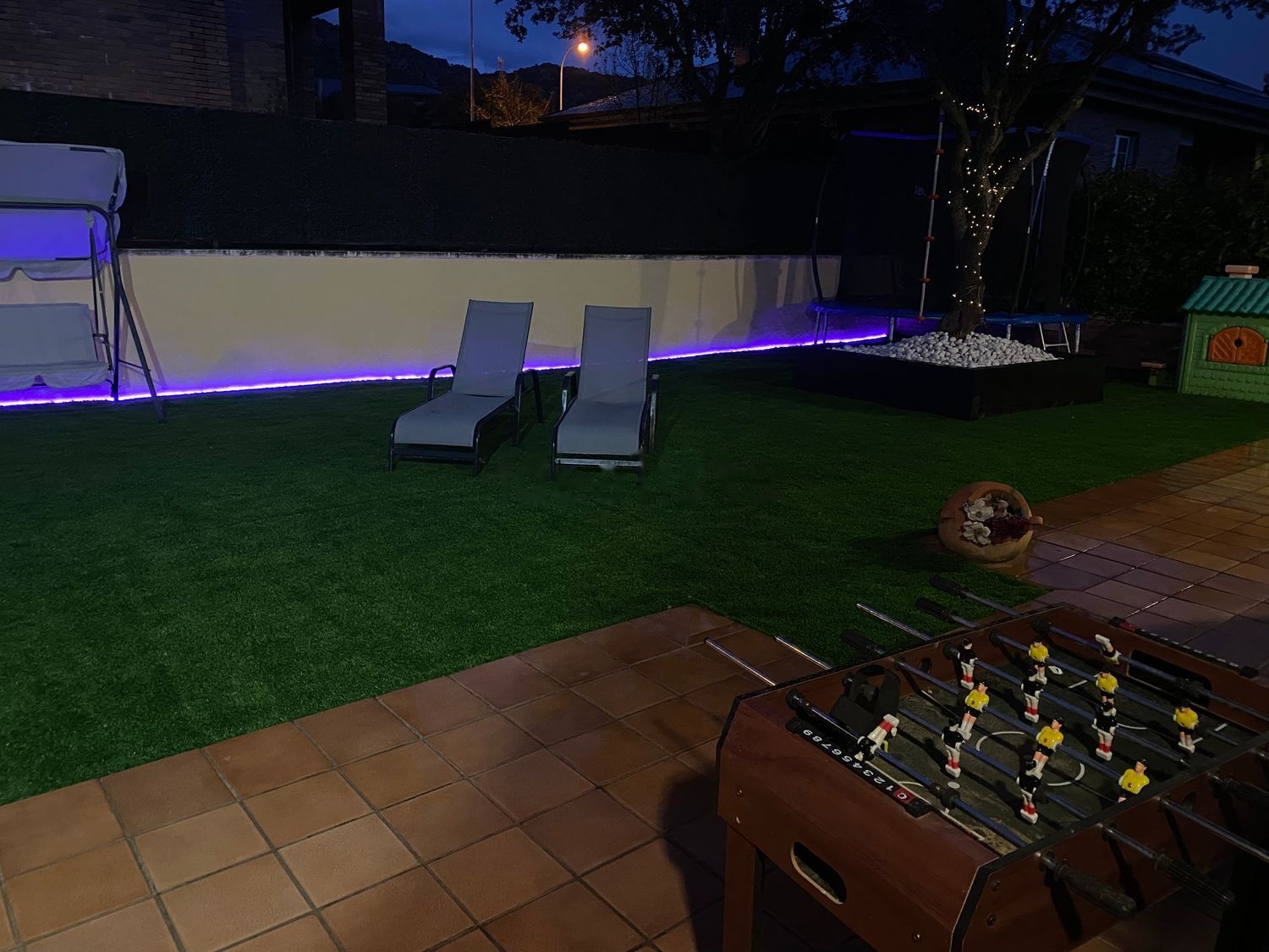 La iluminación del jardín se puede poner en el color o modo que se prefiera con un mando.