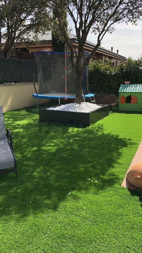Preciosa casa de sólo dos plantas al lado de la montaña con tres habitaciones cuyas ventanas dan al jardín y tres baños en la planta baja principal. Con su amplio y luminosísimo salón con Chimenea con su cassette en la misma planta. Amplia cocina. Jardín al mismo nivel trasero, lateral y delantero de la casa. Caseta trastero y gran barbacoa de piedra en el jardín. Garaje para dos plazas en dicha planta.