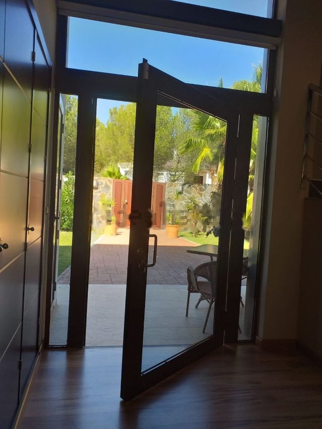 Magnifico chalet de diseño moderno en las Jaras. Construido en una parcela de 1381 m2 con jardín y piscina (10m x 5m) de cloracion salina. La vivienda está distribuida de la siguiente manera: