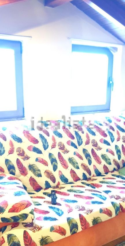 2)Planta 2: dormitorio con sala de estar en donde se aprovecha el ático, para crear una pequeña estancia, con el techo en caída V, y de madera, convirtiéndola en una pequeña cabañita.