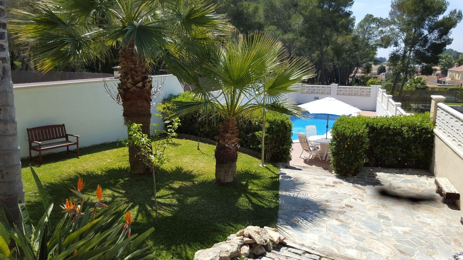 Casa Espectacular en Cunit. Casa con vivienda principal en una sola planta. La casa además dispone de una segunda zona / vivienda en la parte de abajo de la planta principal, a pie de jardín y piscina. El jardín ha sido diseñado y es mantenido por jardineros, dispone de palmeras, cocoteros, aves del paraíso, olivo. Espectacular!
