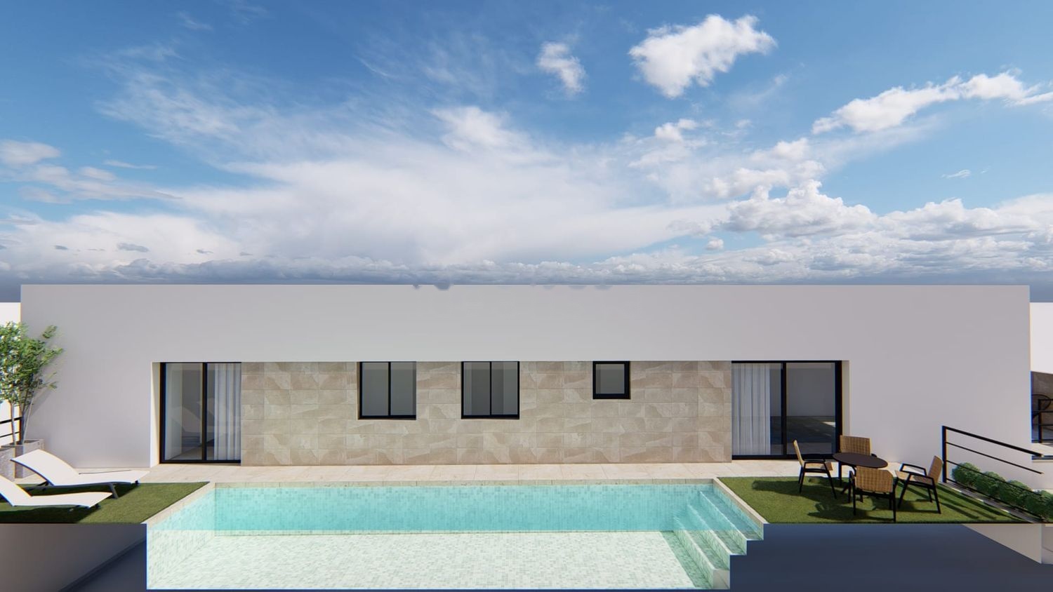 Aparcamiento interior, piscina privada, 2 terrazas, patio mas trastero, armario empotrado mas vestidor en habitacion principal, muebles de baño mas manpara, iluminacion interior y exterior completa, ventanales automaticos.