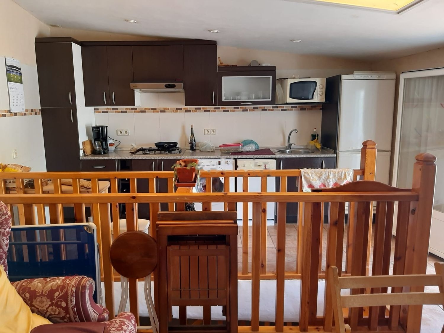En la última planta encontramos la cocina y una salón comedor con climatizador (tanto caliente como frio), desde donde se sale a una amplia terraza de unos 26m con vistas despejadas.