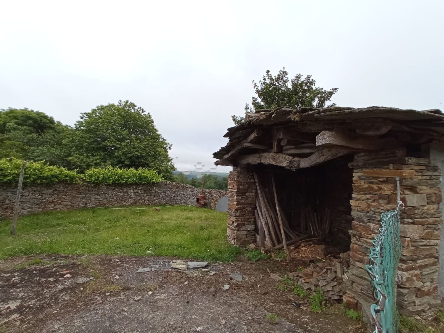 Está dentro de una finca de 7.881 m2, cerrada, que conserva parte de las antiguas paredes de piedra que la rodeaban, destacando en la parte delantera de la casa un paredón de casi 2m de alto que también cuenta con un antiguo lavadero y una vid.