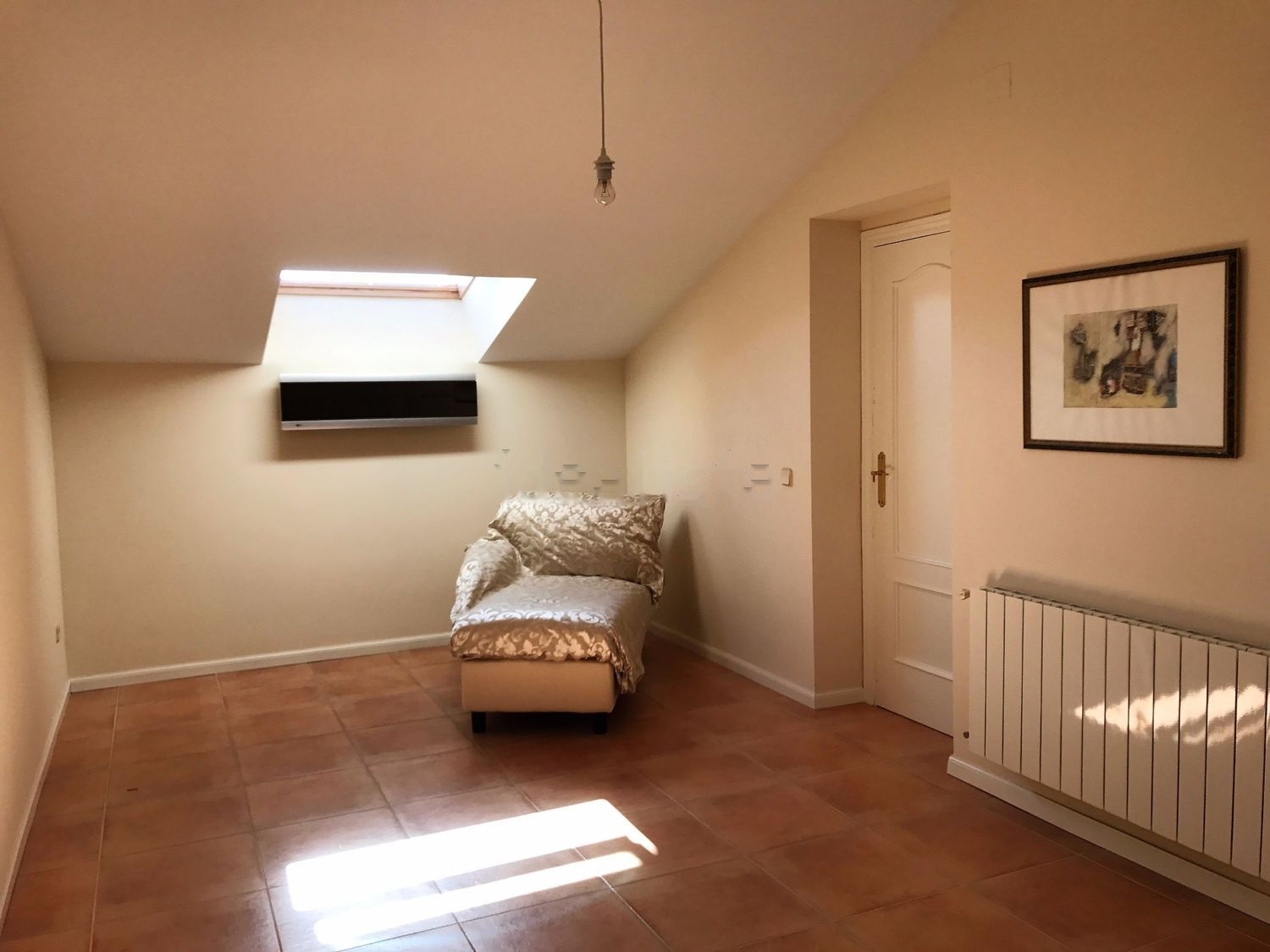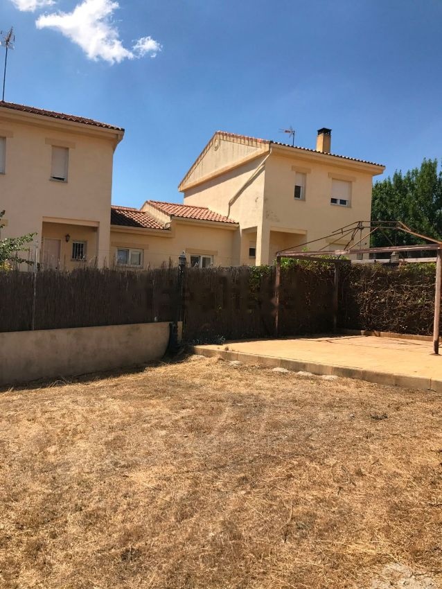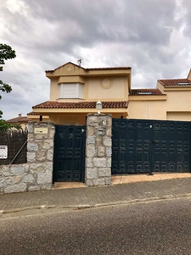 Chalet pareado (por garaje y buhardilla) en parcela de 420 m2. Sin gastos de comunidad. Reformado: pintura lisa, carpintería interior de madera maciza lacada, ventanas de PVC oscilobatientes con cristal doble, valla entrada coches automatizada, alarma. Todo exterior, fantástica orientación. Planta baja: Cocina (13 m2) con electrodomésticos integrados cambiados recientemente, con dos ventanas y una puerta al jardín. Aseo. Salón con chimenea (25 m2). 1ª Planta: Buhardilla (20 m2) con aire acondicionado frío-calor. Dormitorio principal (15 m2 más otros dos dormitorios de unos 10 m2 cada uno y baño. Rampa para aparcar 2 coches además del garaje cerrado para otro coche (21 m2) con puerta nueva y ventana, se puede acceder al mismo directamente desde en interior de la vivienda. Calefacción y agua caliente por bombonas de propano de 11 kg (instalación de 10 bombonas), caldera Saunier Duval 31KW recién estrenada. Patio delantero y trasero, acera que bordea la vivienda. Certificado energético. Orientación: Sur, este y oeste.