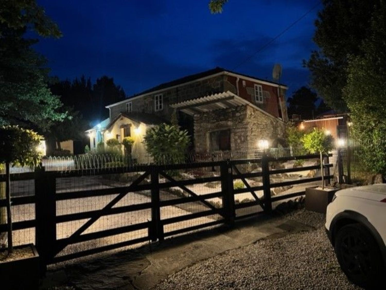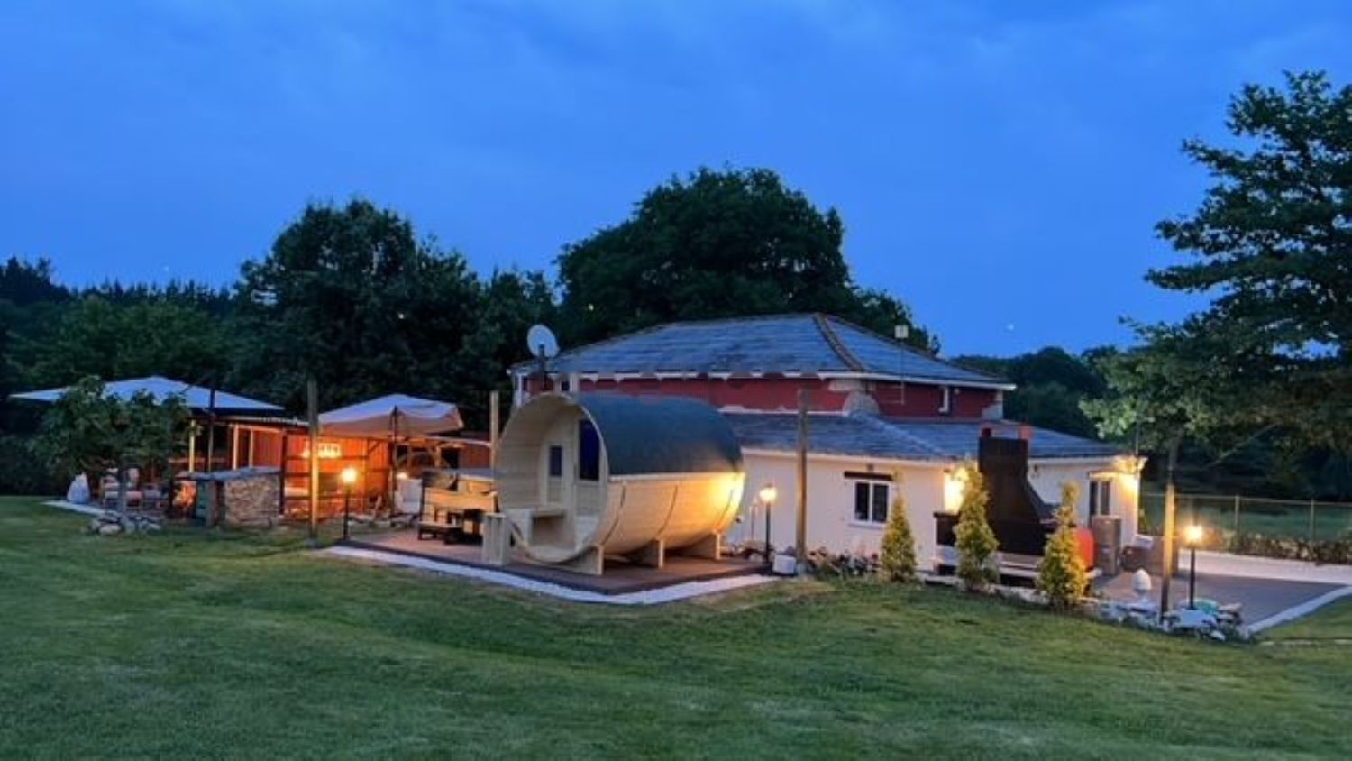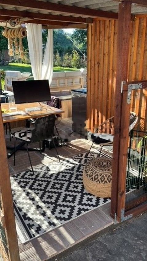 casa rodeada de vegetación y tranquilidad con muchas diversiones hidromasaje sauna gimnasio y lugares donde se puede comer al aire libre y disfrutar de la tranquilidad.