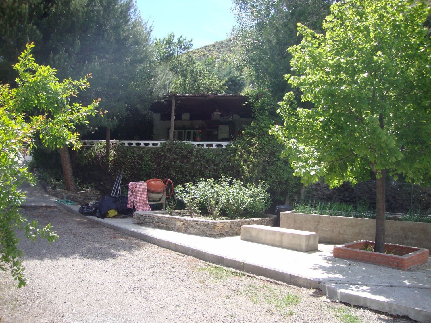 -cortijo de 15 mil metros, totalmente vallado, tres accesos para vehiculo, la principal a pie de carretera comarcal con puerta automatica y asfaltada hasta el parking de la vivienda, agua potable, agua riego manta, pozo propio, sistema de riego por goteros, piscina, zona de barbacoa con pergola, bodega, gallineros, corrales, lavadero, almacen de herramientas, viñas, olivos, almendros y arboles frutales ecologicos