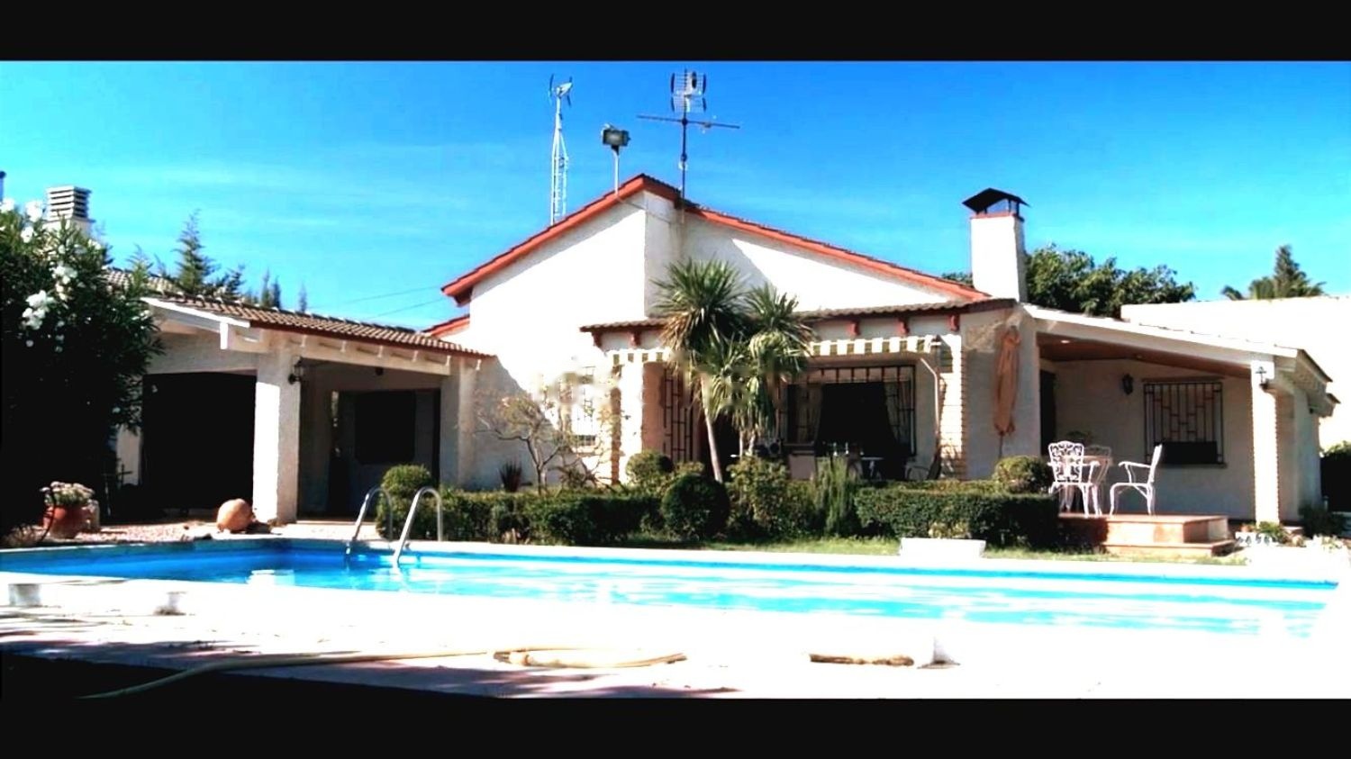 Cuarto adosado a la casa y otras dos construcciones, una para guardar herramientas y maquinaria del jardín, leña o mobiliario del jardín y otra con la depuradora de la piscina y un baño exterior