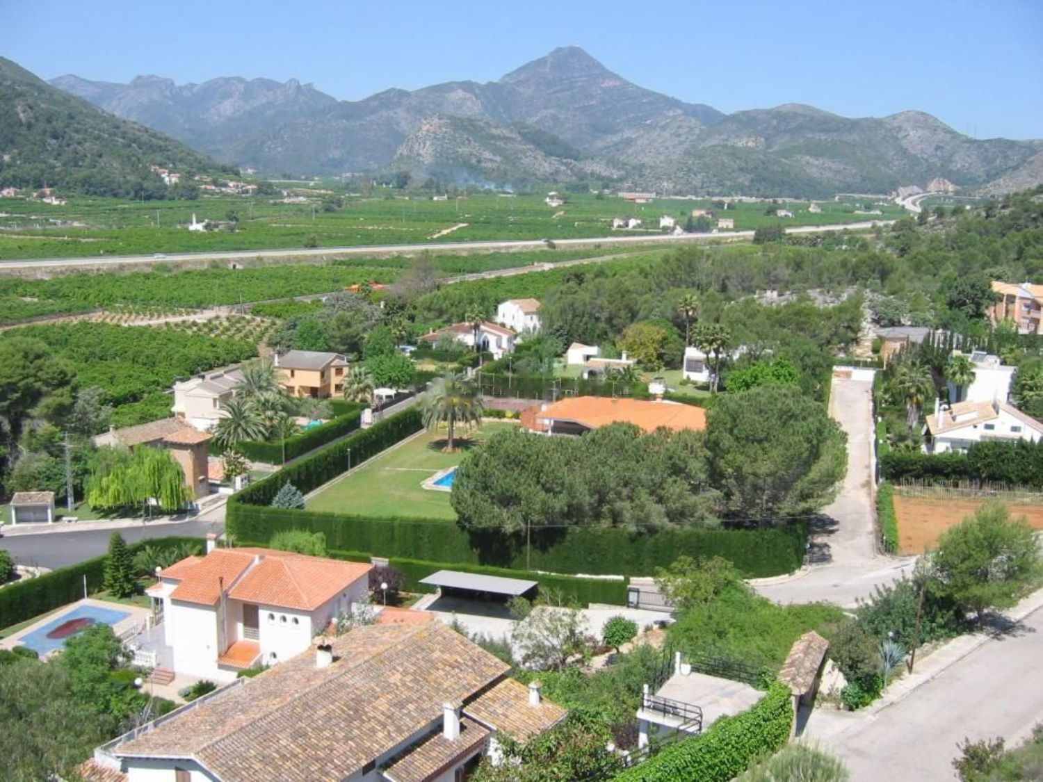 A very large house with terraced gardens, fruit trees & a large patio with BBQ. 2 garages, stunning panoramic views, 1 km from town centre with supermarkets, bars & cafe, restaurants, shopping centres, weekly market, theatre, palace, schools & hospital etc. 15 minutes drive to beaches. 5 minutes drive to train station which links to Valencia Airport.