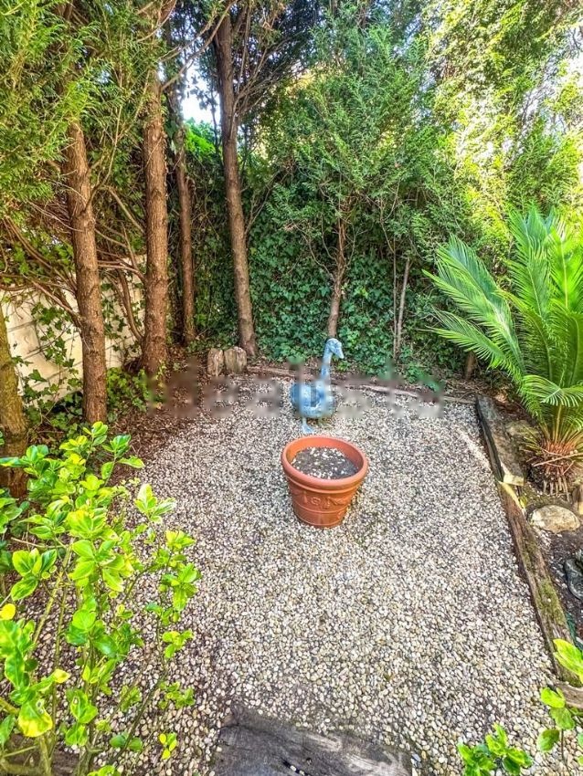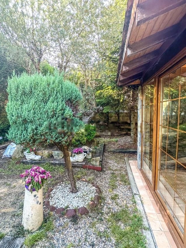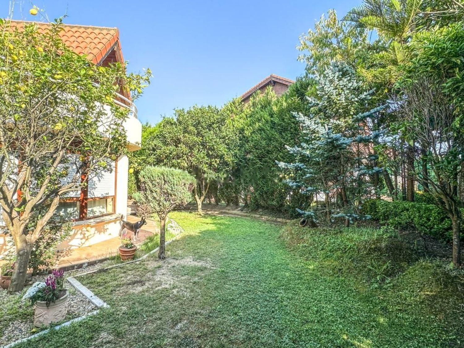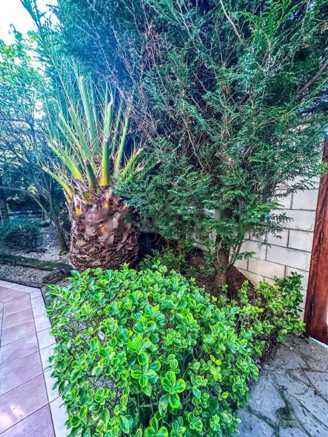 El Jardín Tiene una superficie de 280m2. Orientación Suroeste. Es muy bonito y soleado, rodea toda la vivienda y está adornado con diferentes clases de árboles. Perimetralmente tiene plantadas Tuyas que aportan privacidad a la vivienda.