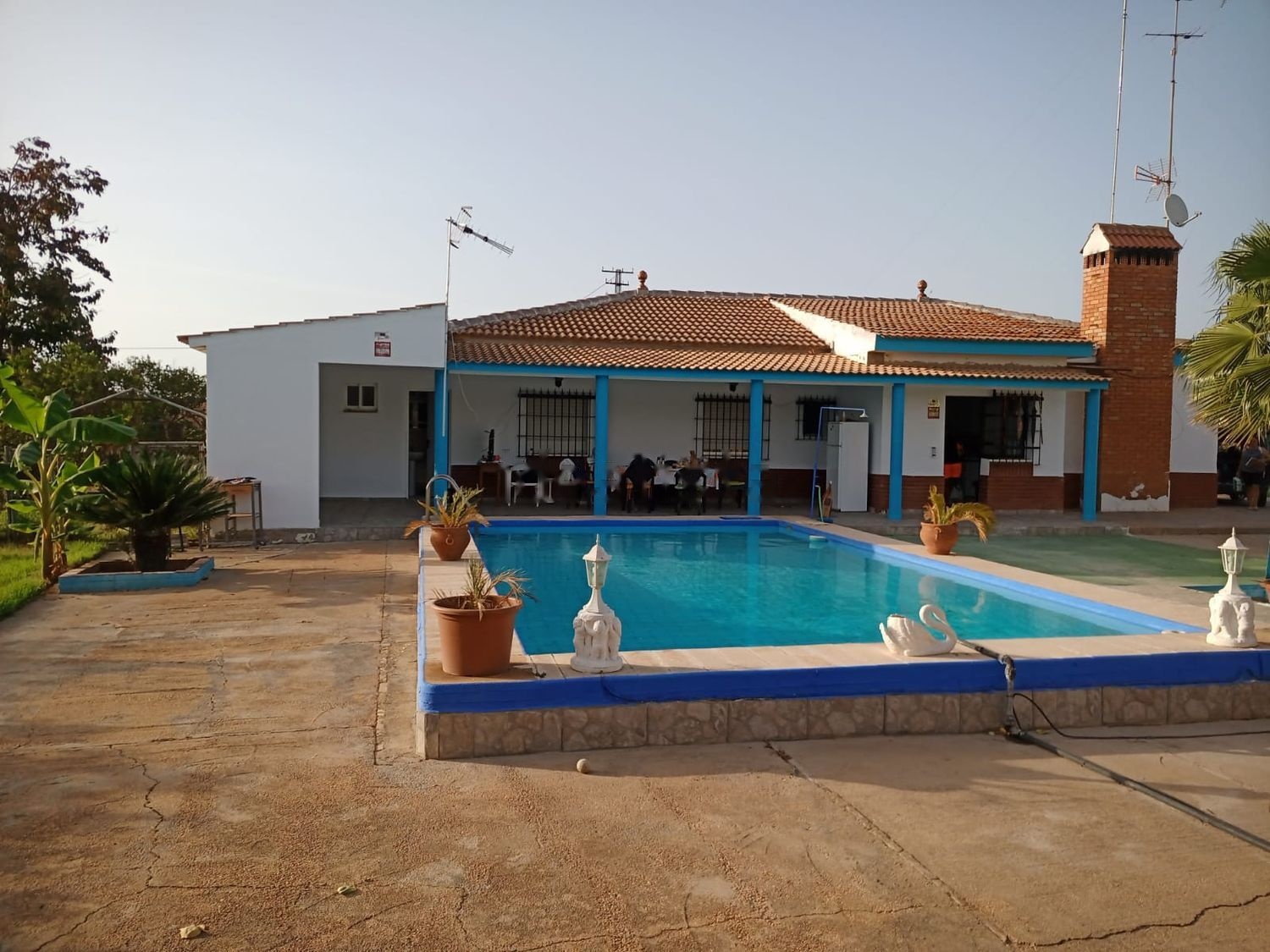 tiene piscina y garaje.