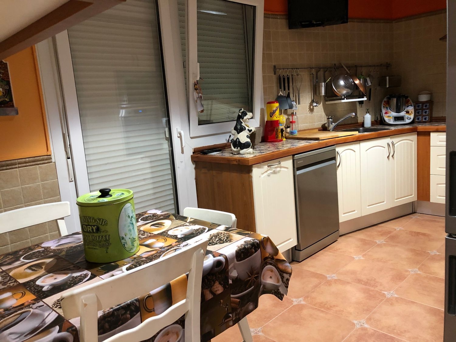 Chalet adosado, con 4 habitaciones, una de las habitaciones en planta baja, 3 de ellas con armarios empotrados, mosquiteras en todas las ventanas, piscina comunitaria, varias mejoras. Doble puerta de entrada, cortando la pérdida de calor y la entrada de frío. Caldera marca Vaillant de condensación cambiada hace unos meses. Patio recién reformado, se ha picado entéro, canalizado los canalones y desagües, embaldosado y forrado las paredes, se ha puesto en el patio una pérgola y un toldo en la habitación de matrimonio. Puerta de garaje automatizada, aislada, recién cambiada. Aire acondicionado en habitación de matrimonio. Se deja sin muebles.